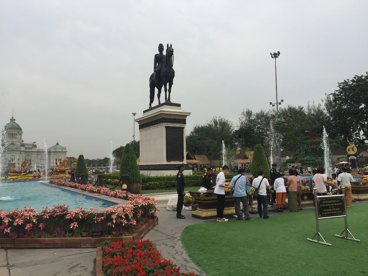 아난다사마콤 궁전 입구에 도착했지만.. 아.. 내부 행사로 인해 입장이 불가능하였다. 허탈한 마음으로 돌아서며, 라마 5세 동상이라도 볼 수 있을까 해서 그곳으로 발걸음을 옮겼다. 그런데, 모든 도로가 통제가 되고 경찰이 입구를 막고 있었다. 다행히 거리를 통제하는 경찰관이 라마 5세 동상 쪽에서 운아이락 축제가 열리고 있으니 경찰차를 타고 그곳으로 가면 태국의 전통의상을 볼 수 있고 음식을 먹을 수 있다고 안내였다.