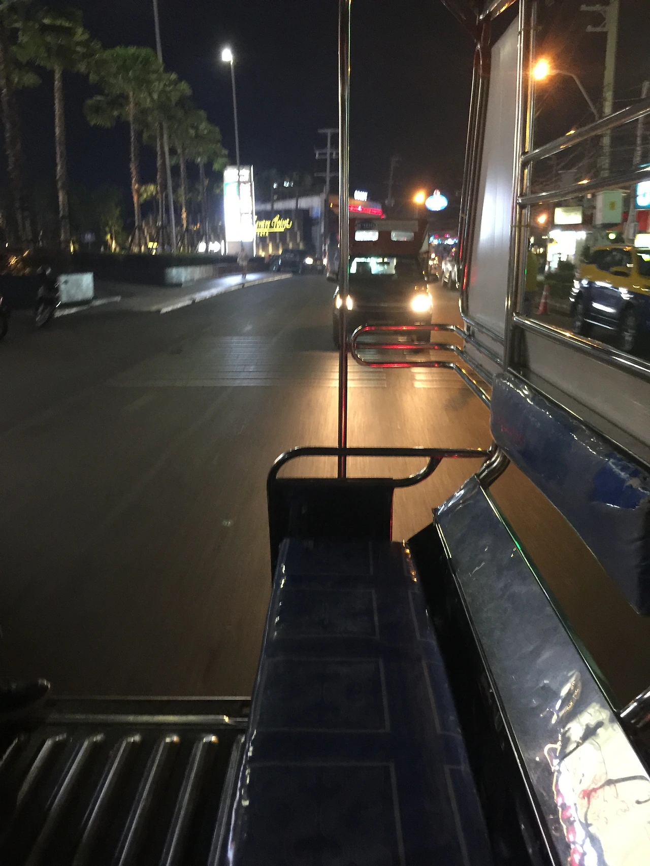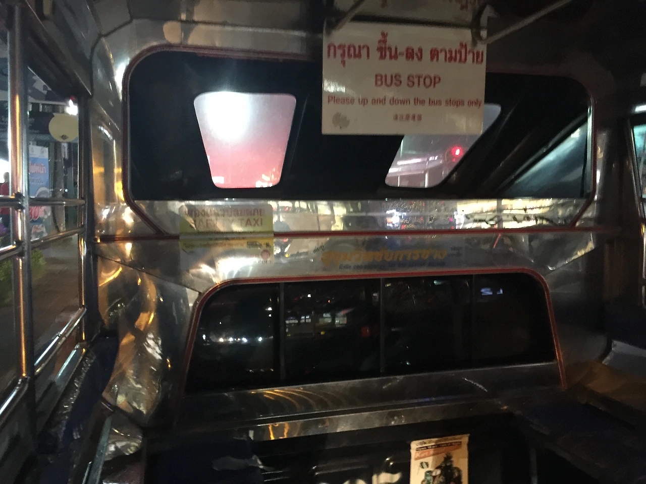 파타야에서는 생태우를 많이 타고 다녔다. 요금이 10바트라 부담이 없고 중심이 되는 도로를 쉽게 이동할 수 있었다. 타는 방법은 택시처럼 손을 들어 세우고 올라탄 후, 목적지가 다가오면 벨을 눌러 멈춘다. 이후 10바트를 지불하면 끝!! 별도의 정류장은 없다.