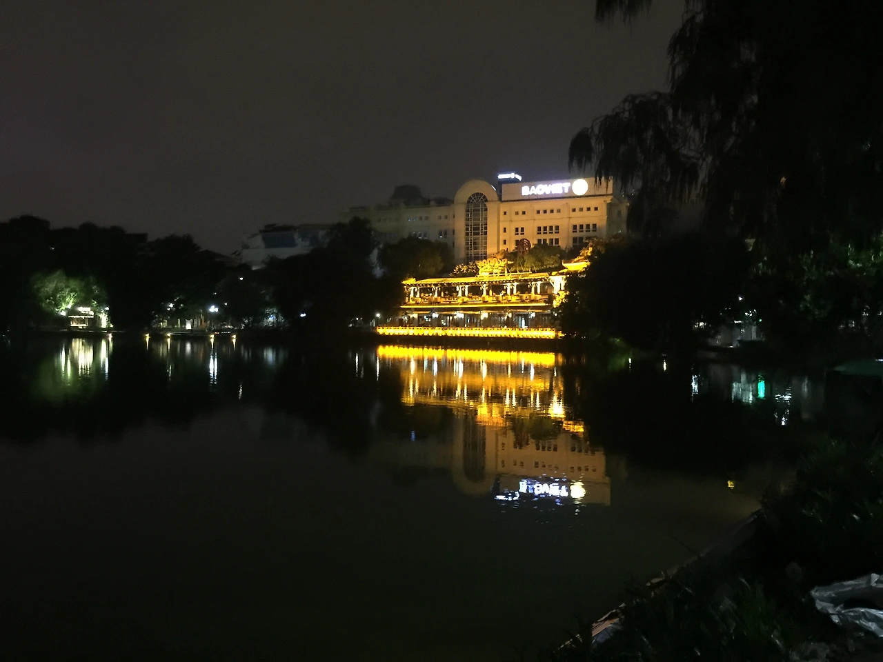 어둠이 조금씩 밀려올 때, 로컬 식당에서 저녁을 간단히 해결하고 호안끼엠 호 주변을 둘러보았다. 아름다운 호수였다. 멀리 건물의 불빛들이 호수에 비치는 풍경이 무척이나 아름다웠다.