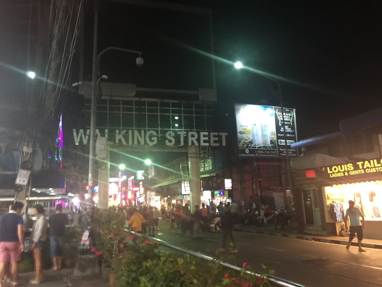 호텔에 짐을 풀고 생태우를 타고 파타야 해변 끝에 있는 워킹스트리트라는 유명한 유흥가 거리를 찾아갔다. 이곳은 일반적인 beer bar, agogo bar, club 등 유흥업소들로 유명하다. 인터넷을 찾아보니 아고고 바에는 여자들이 노출이 심한 옷을 입고 춤을 춘다고 한다. 궁금하기는 했지만 혼자 들어가기에 뭔가 뻘쭘한 느낌이고 혼자 들어갈 깡? 이 없었다(의외로 소심함). 무엇보다 호객 행위로 사기들을 치는 경우가 많다고 하니 거리를 지나는 것으로만 만족하였다. 거리 자체는 신나는 음악, 거리의 마술사 공연, 아고고 바의 호객행위들로 시끌벅적하였다.