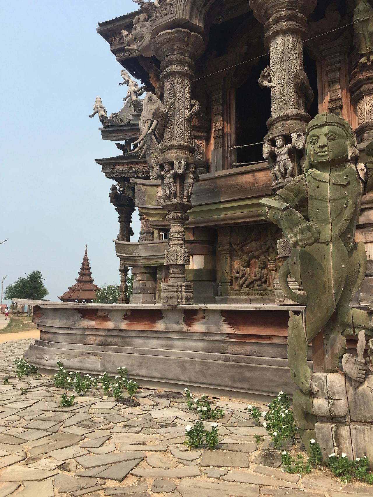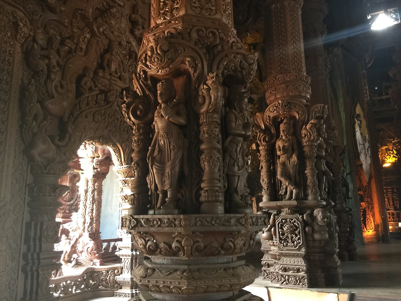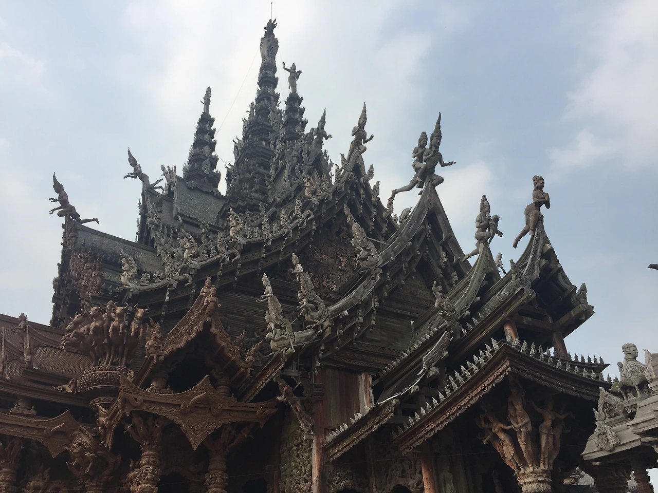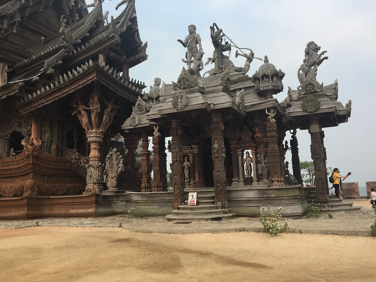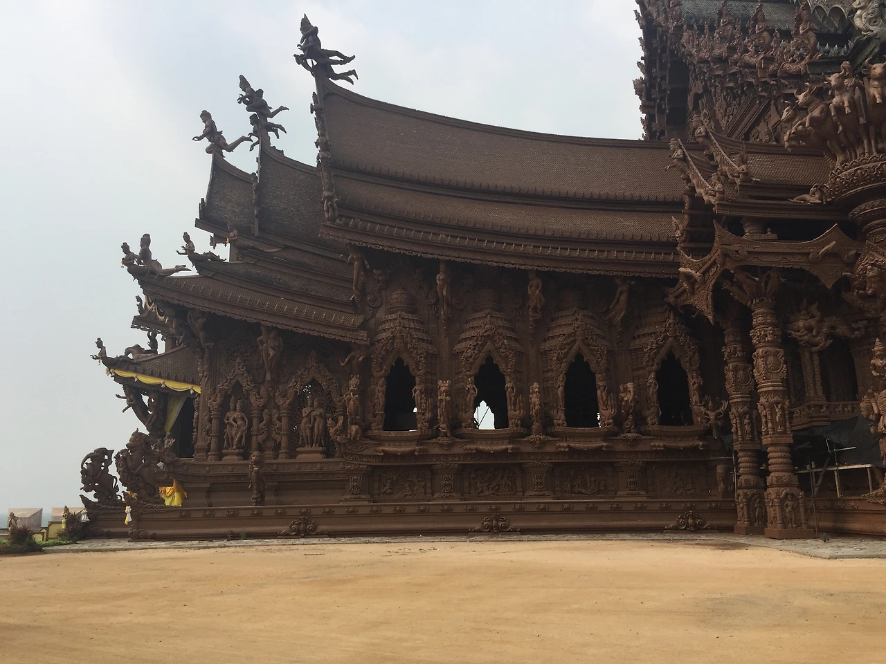지금까지 많은 사원을 보았지만 진리의 성전 같은 목조로 만들어진 사원은 처음인 것 같다. 사원안에는 정밀하고 화려하게 조각된 불상과 많은 신들을 볼 수 있는데, '와~'란 감탄사가 계속 나왔다. 다만, 아쉬웠던 점은 곳곳에 보수 공사를 하는지 여기저기 설치된 비계(飛階)로 인해 완전히 온전한 사원의 모습을 볼 수 없었다.