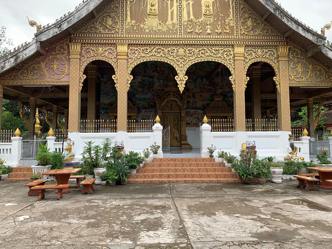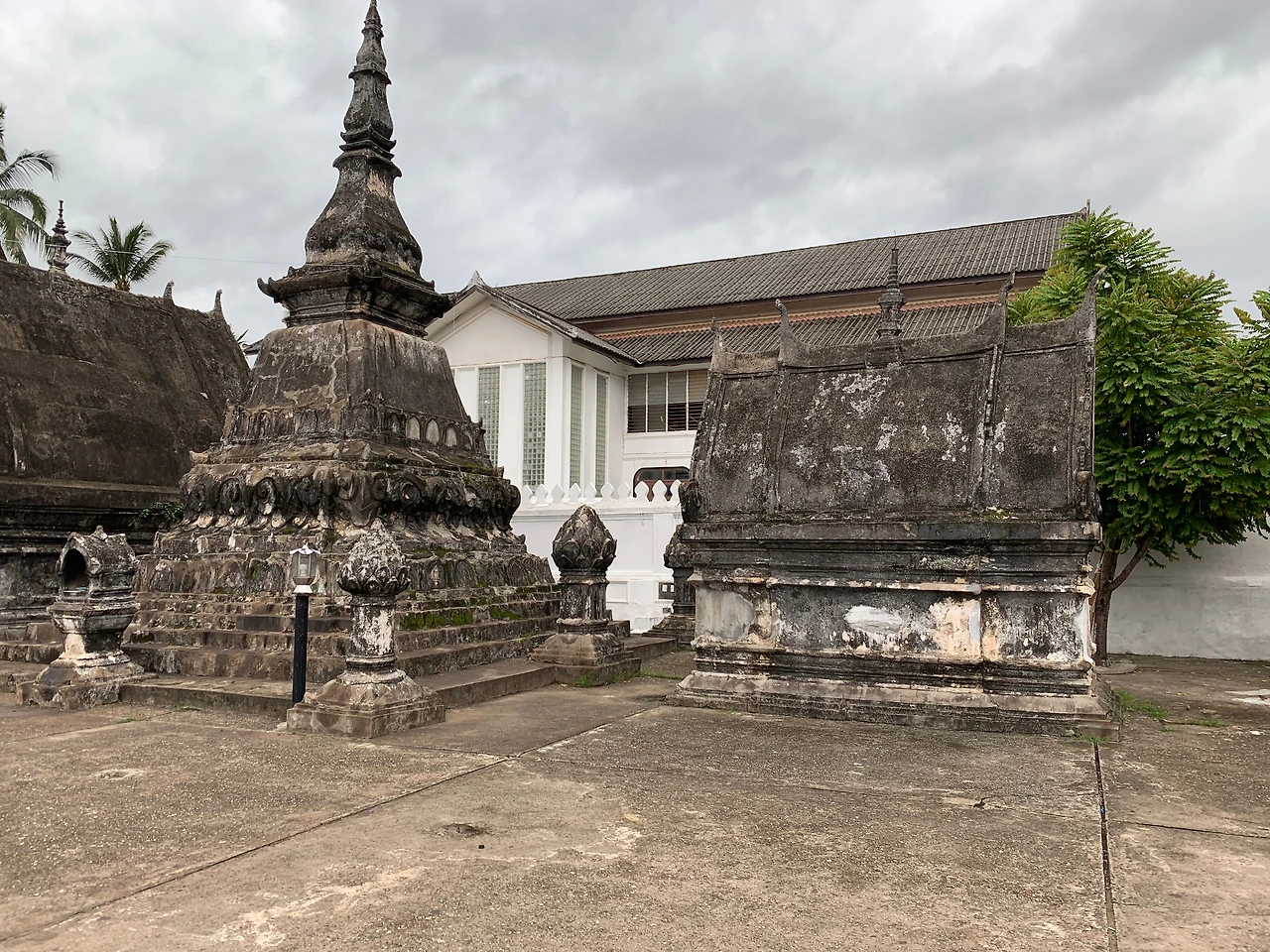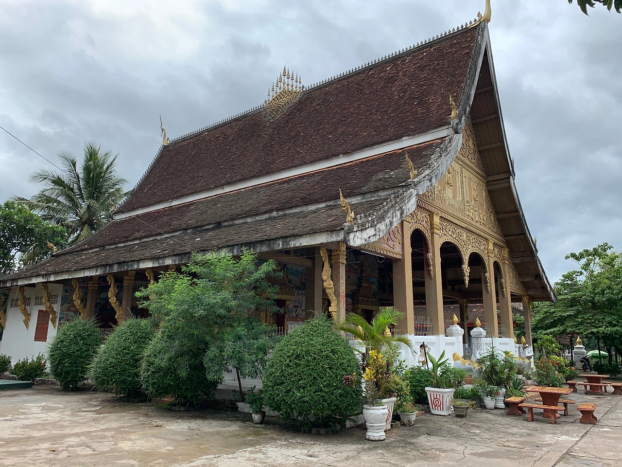 왓 호씨앙과 왓 탓은 바로 옆에 붙어 있고 지붕과 기둥의 모양이 비슷하여 구분하기가 어려워 내가 어느 사원에 있는지 헷갈렸다. 구글 지도에도 두 사원이 정확하게 구분되어 있지 않았다. 관람을 마치고 나니 두 사원의 기둥의 색깔이 다르고 왓 탓에는 탑이 있다는 점에서 차이가 있었다. 왓 탓의 '탓'은 탑을 의미한다.