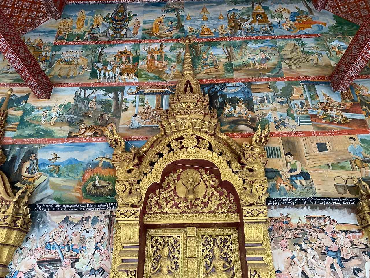 호텔 체크인 후 짐을 정리하고 바로 거리로 나갔다. 왓 폰싸이는 숙소와 가까웠고 시장 입구 쪽에 있었다. 시장과 붙어 있어서 그런지 사원 입구 주변이 지저분하였다. 규모는 작았으나 대법전 출입문에 그려진 그림들이 나의 발길을 사로잡았다. 지옥의 모습이 그려진 그림으로 그 내용을 추측할 수 있었다.