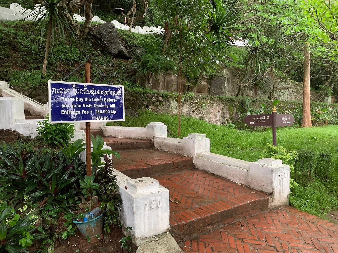 체력도 떨어지고 다리도 아파 저녁 먹기 전 남은 체력으로 푸시산에 오르기로 하였다. 정상에 오르면 루앙프라방 시내를 한눈에 볼 수 있다는 말에 여행 전부터 꼭 오르고 싶었다. 여행 전 구글 지도에서 입구를 찾을 수 없었으나 왕궁 박물관 근처에서 쉽게 찾을 수 있었다.