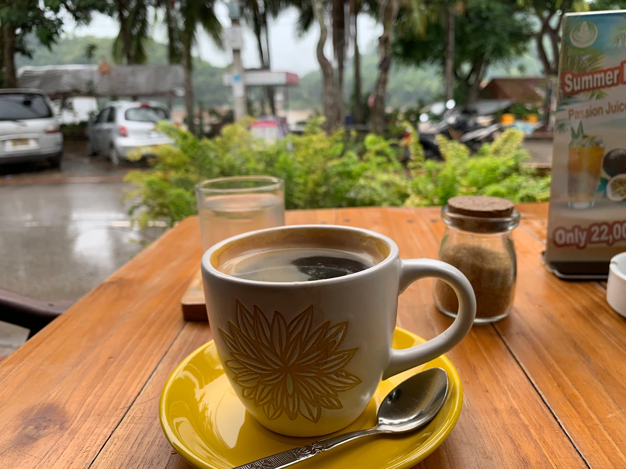 줄기차게 내리는 비와 몸의 피곤함은 커피를 생각나게 만들었다. 카페를 찾기 위해 메콩강 쪽으로 걸었다. 마침 강변 근처에 카페에 들어가 커피를 주문하였다. 빗소리를 들으며 마시는 커피 맛이 일품이다. 따뜻한 기운이 온몸에 전해지니 집이 그리워진다.