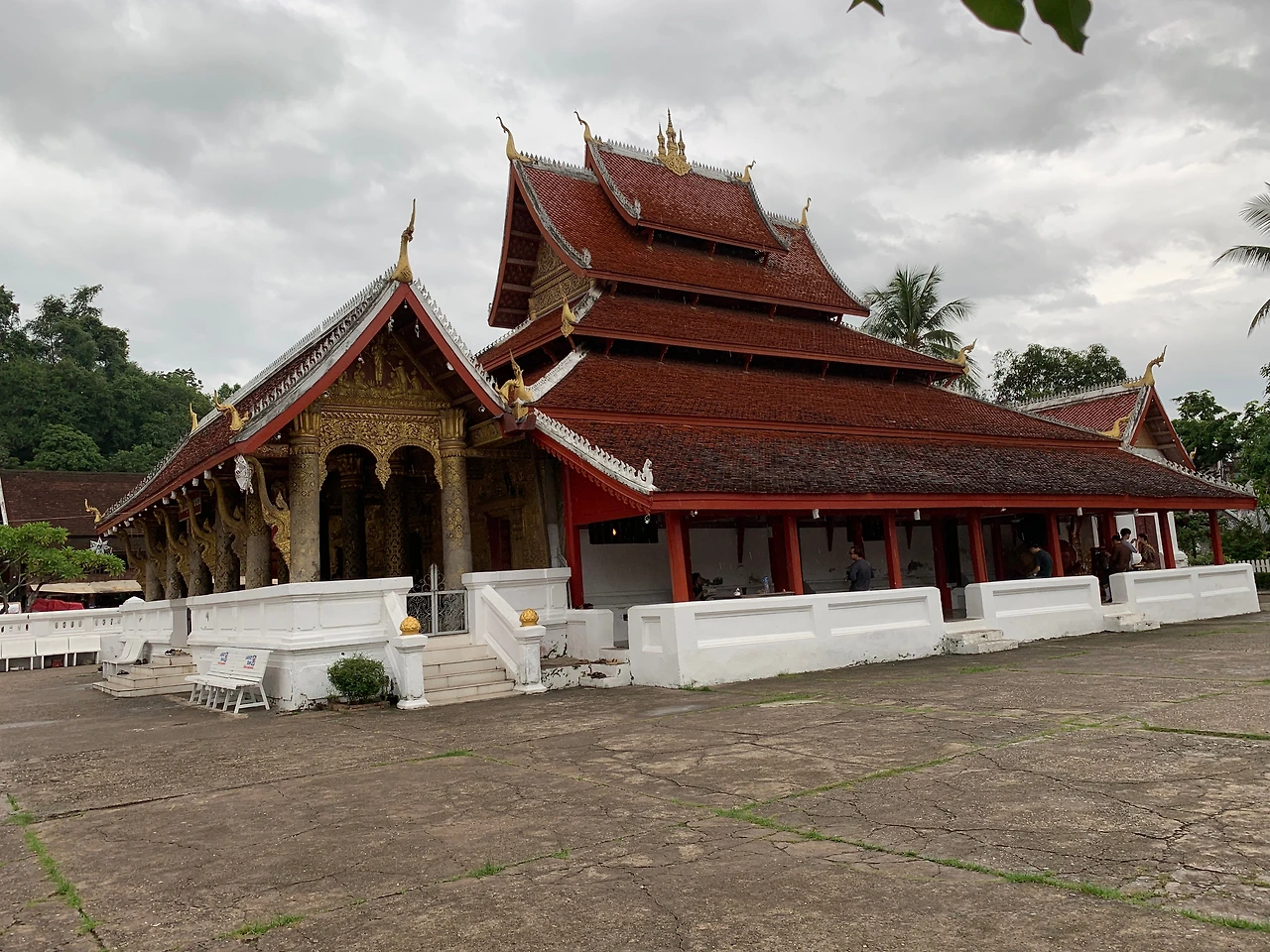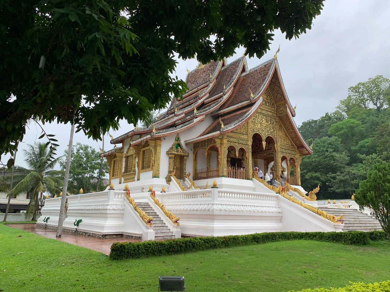 왓 마이를 대략 둘러본 후 바로 옆에 있는 왕궁 박물관으로 향했다. 루앙프라방에서 그나마 볼만한 것 중 하나이다. 예전에 왕궁으로 사용된 곳으로 씨싸왕웡 왕 동상과 박물관 그리고 호 파방(파방 사원)을 볼 수 있는 곳이다. 박물관은 가방을 따로 보관해야 하므로 일단 보관실로 향했다. 이후 박물관 전시실을 둘러보았는데, 사진 촬영이 되지 않아 아쉬웠다. 박물관 관람이 끝나고 밖으로 나오니 아.. 비가 또 내린다. 우산도 없는데..ㅜㅜ 이제는 젖은 옷이 익숙해졌지만 감기 기운이 있어 별로 반갑지 않았다.