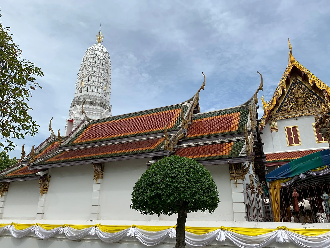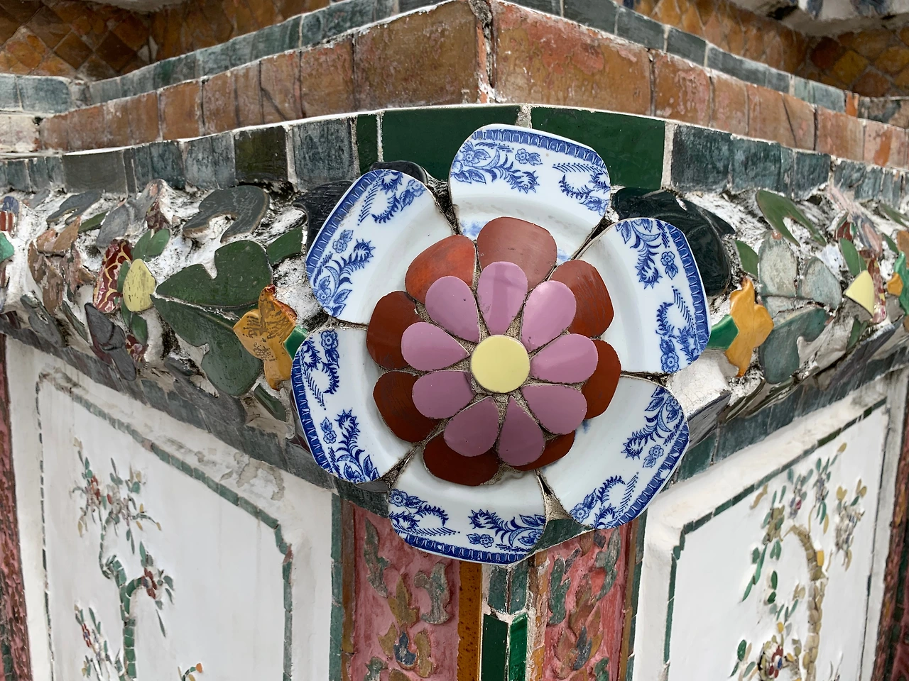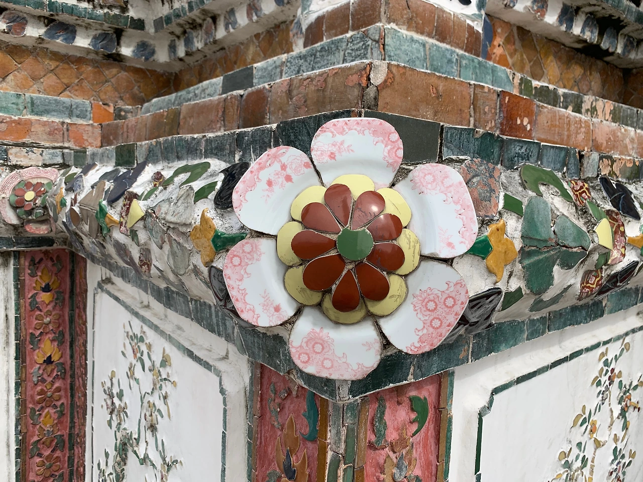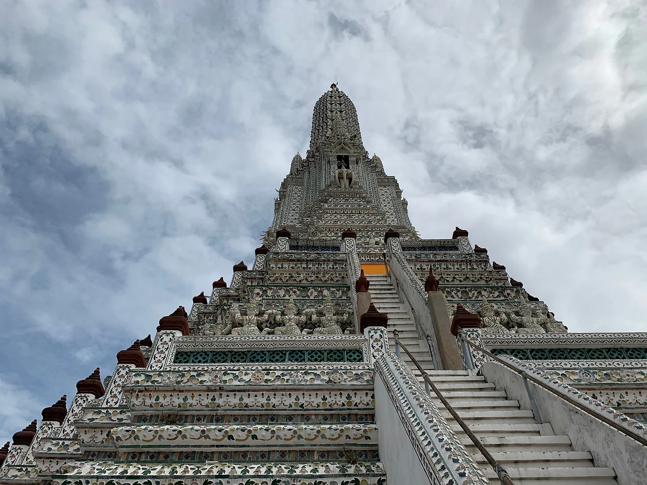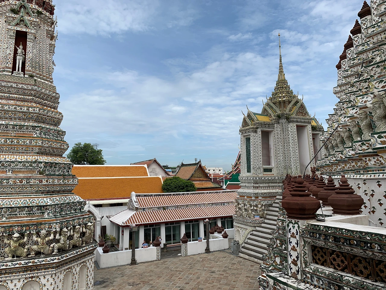 탑의 1/3 지점까지 계단을 따라 올라가니, 주변 풍경이 시원하게 보인다. 전체적으로 하얀색이지만 가까이 보면, 도자기로 만든 타일이 붙어 있었고 그 타일은 다양한 문양과 색으로 꾸며져 있었다. 곳곳에 현장체험학습을 온 학생들이 교사의 설명을 듣고 있었고 많은 사람들이 사진으로 사원의 분위기를 남기고 있었다.