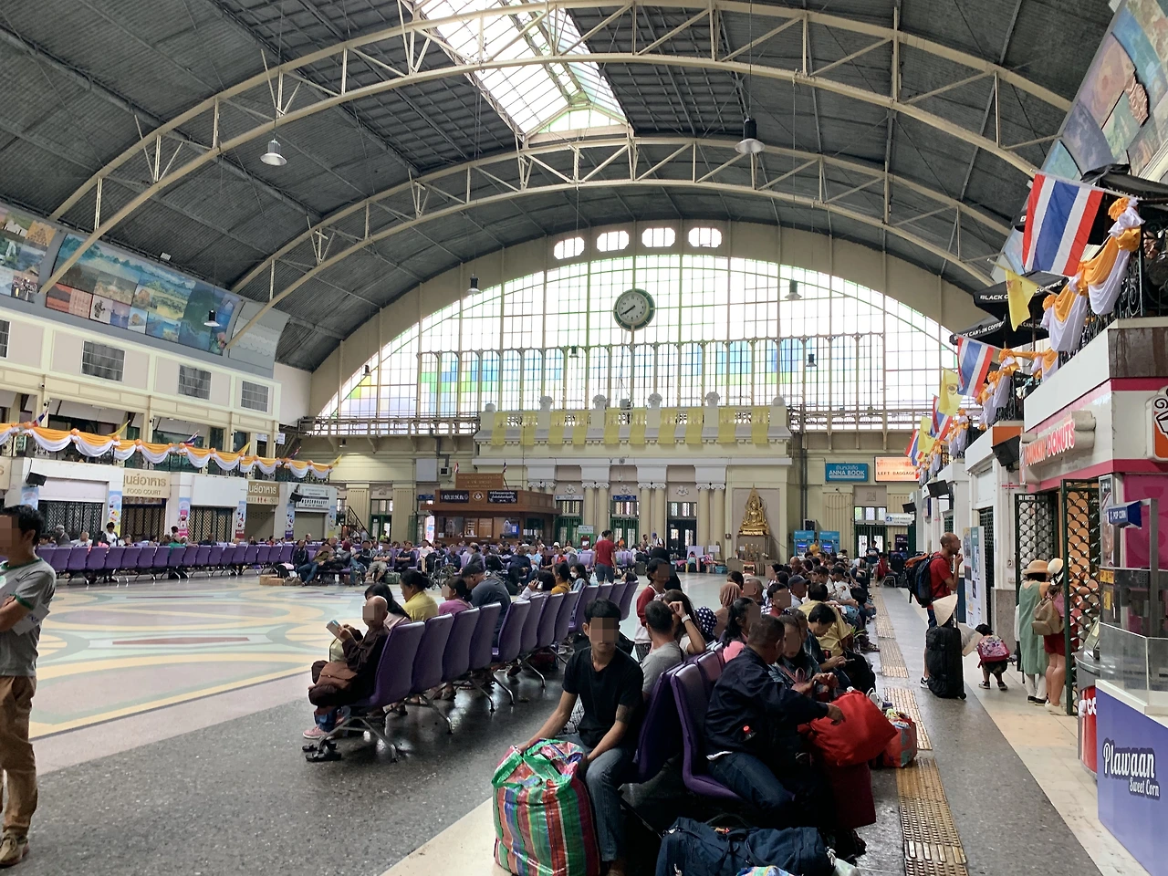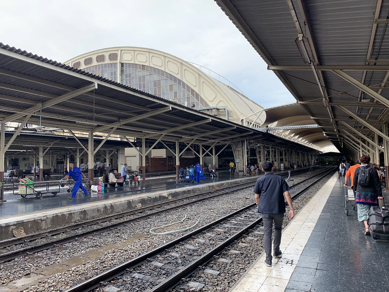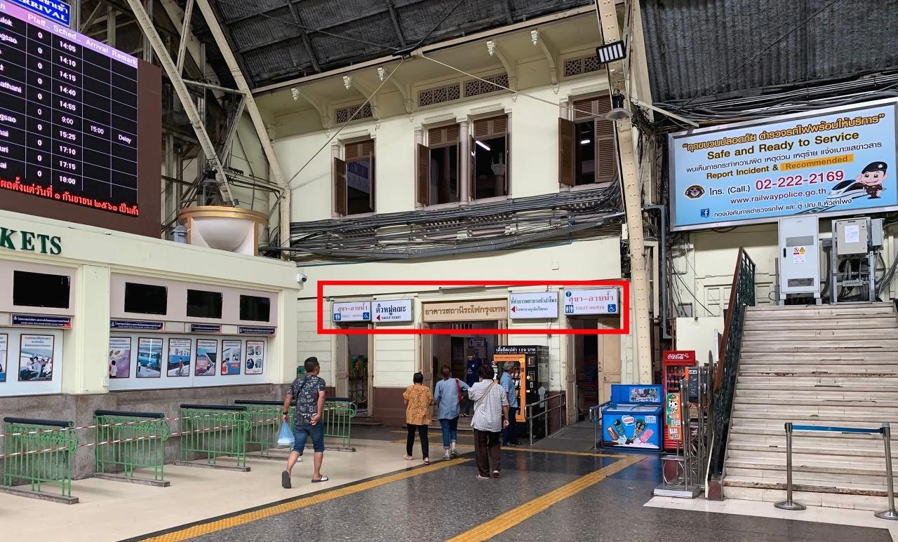 지난 겨울에 후알람퐁 기차역을 봐서 그런지 오랜만에 만난 사람처럼 친근하게 느껴졌다. 플랫폼에서 나와 거울로 내 상태를 보니 어제부터 씻지 못해 머리도 얼굴도 엉망이다. 일단 기차역 안에 짐 보관 센터를 찾아 캐리어를 맡겨두고 샤워실을 찾았다. 샤워실은 대합실 쪽 화장실 옆에 있는데, 청결함과 거리가 멀었다. 그래도 일단 거지꼴로 다니는 것보다 낫기에 샤워실로 향했다.