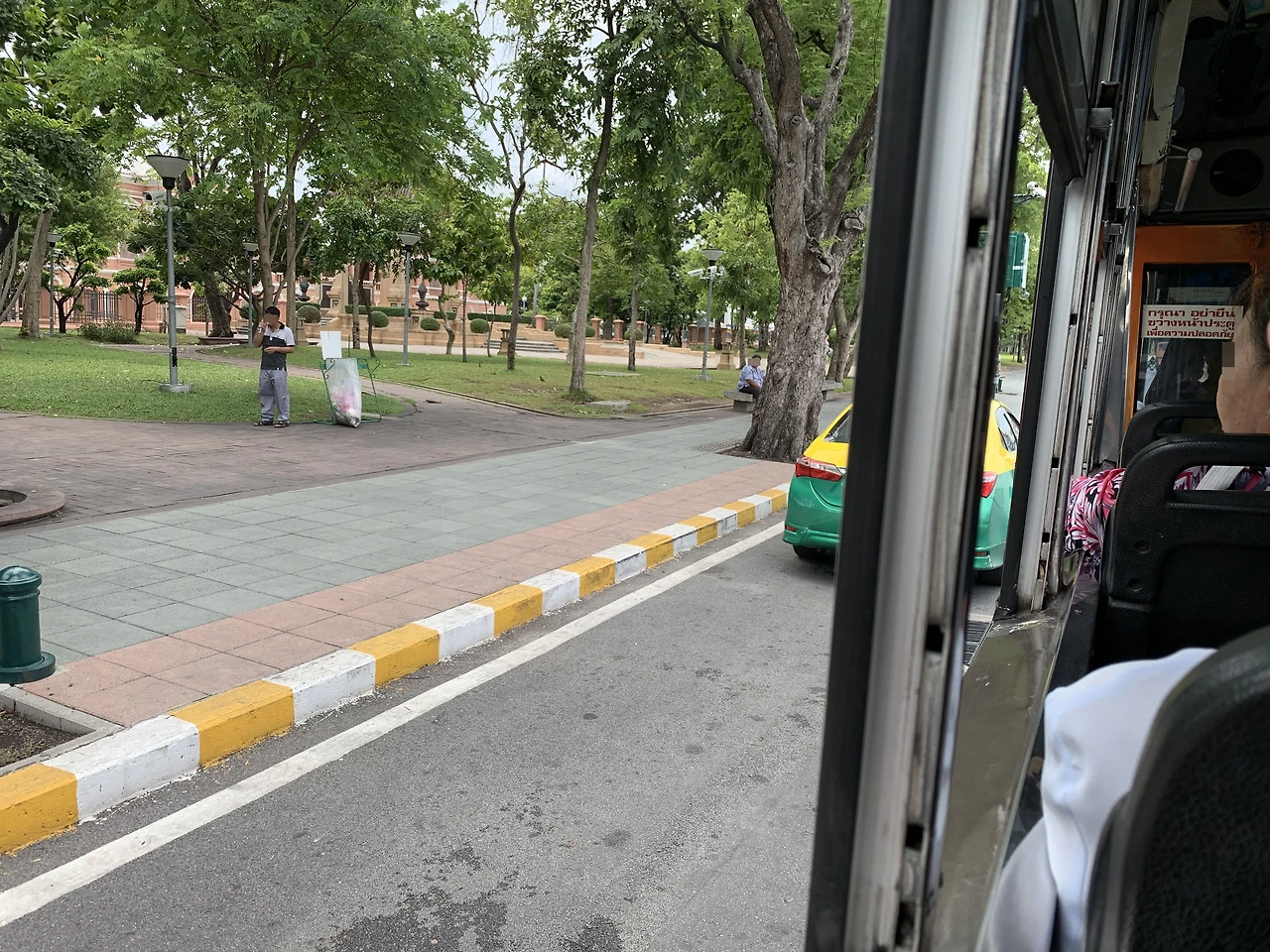대학의 정문으로 나와 호텔로 가기 위해 훌알람퐁 기차역으로 향했다. 방콕 왕국 근처에서 택시를 잡았는데, 후알람퐁 기차역까지 400바트를 요구한다. 이젠 바가지 씌우는 것에 조금 진절머리가 난다. 택시를 그냥 보내고 그랩을 이용할까 생각하다가 근처 경찰로 보이는 남자에게 버스 타고 가는 방법을 물어보았다. 마침 지나가는 버스가 보였고 경찰이 버스를 세워 주어 30바트인가? 저렴한 요금에 올 수 있었다.