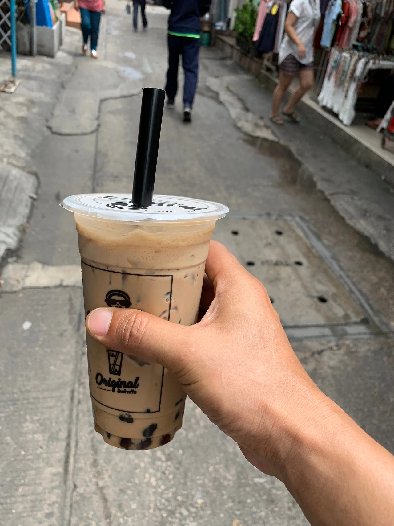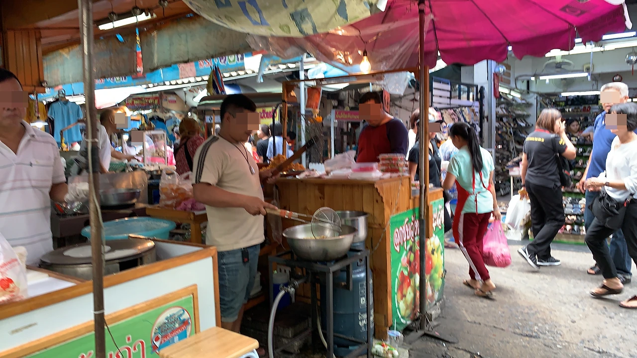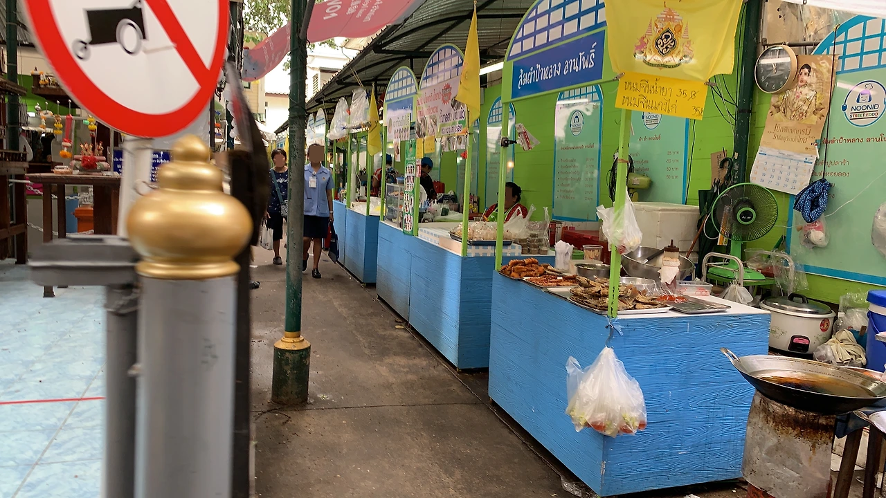 왕랑시장은 로컬 시장의 모습을 살펴볼 수 있는 곳이다. 후덥지근한 날씨와 배고픔에 시장 입구에서 음료를 구입하였다. 찬 기운이 몸의 기운을 끌어내는 것 같았다. 적당한 식당에서 배를 채우고 싶었지만 사람들에게 치어 물 흘러가듯 강제 이동해야 했다. 어쩔 수 없이 탐마삿 대학에서 학식을 먹을 생각으로 일단 참고 지나갔다.