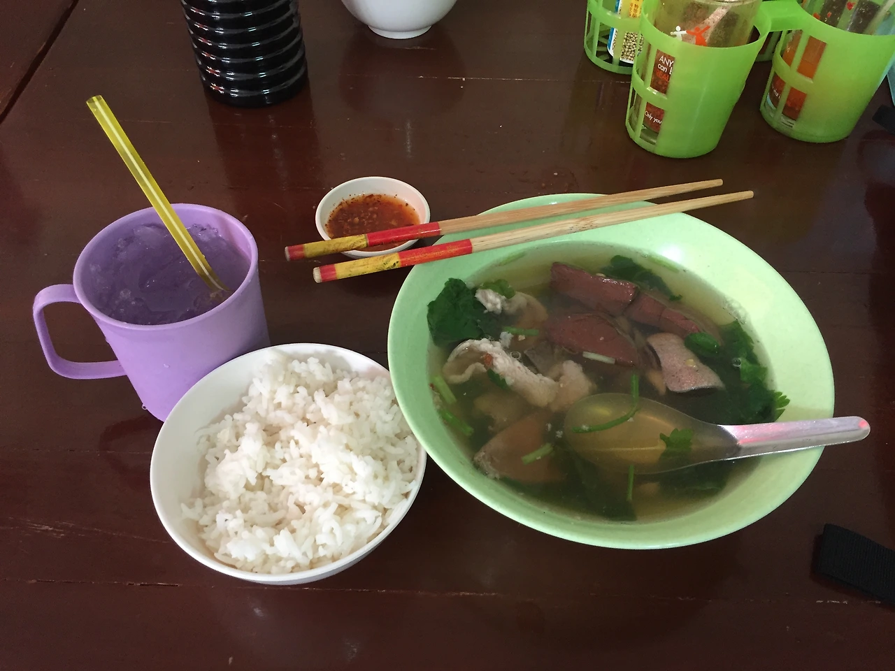 새벽 사원에 도착하고 아침을 먹기 위해 사원 근처 로컬 식당으로 들어갔다. 우리나라 선짓국 비슷한 것을 시켰는데, 약간 비릿하고 설명하기 힘든 특유의 맛에 다 먹지 못하고 남길 수밖에 없었다.(가격은 저렴하다.)