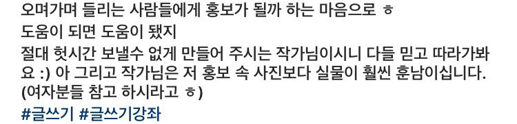 - 장OO 님(글쓰기 클래스 1기 수강생)