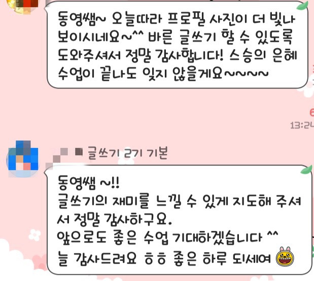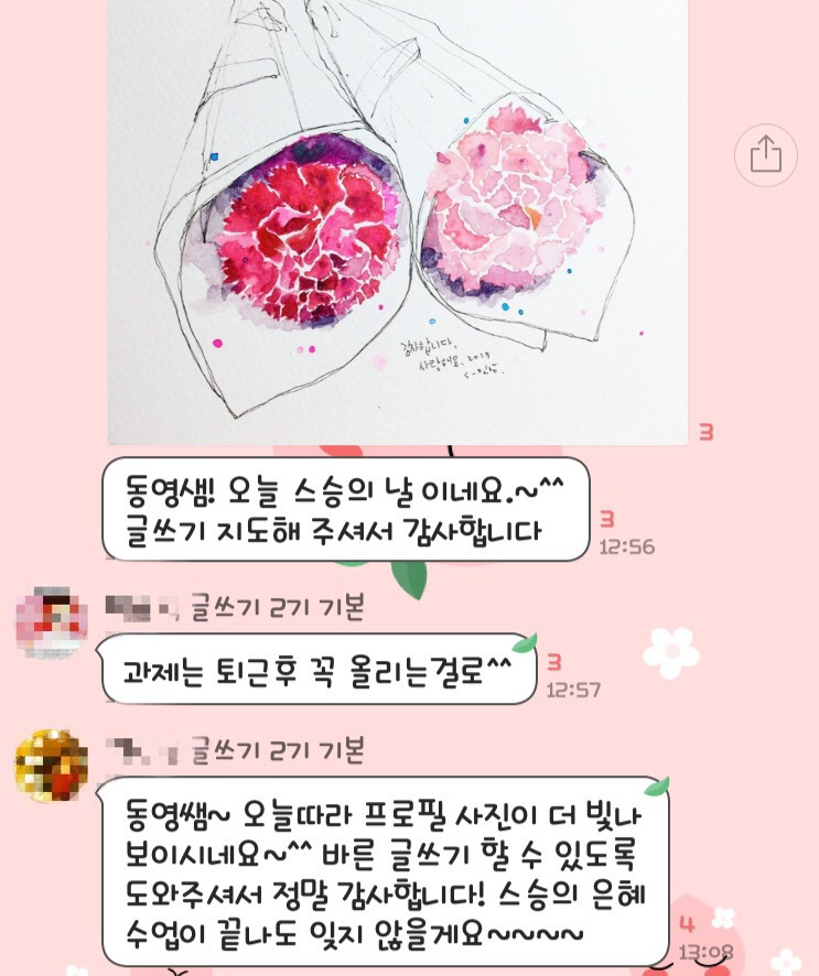 그러니까, 불과 2달 전까지만 해도 스승의 날에 이런 기쁨과 보람을 만끽할 것이라고는 상상조차 못 한 일이란 소리다. 내가 정말 '선생님'이 된 것이다(정확히는 '샘'이다). 강좌 관련 네이밍은 글쓰기의 성장이라는 의미로 '글쓰기 클래스 = 글 클'이고 글쓰기 수강생들의 마르지 않는 글샘이 되겠다고 '선생님 = 샘'이라고 정했다. 그리고 글쓰기 수강생들은 매일 글쓰기를 하기 때문에 '작가'라고 부른다. 내가 '이동영 작가'가 아니라, '샘'과 '작가님'의 관계이다.