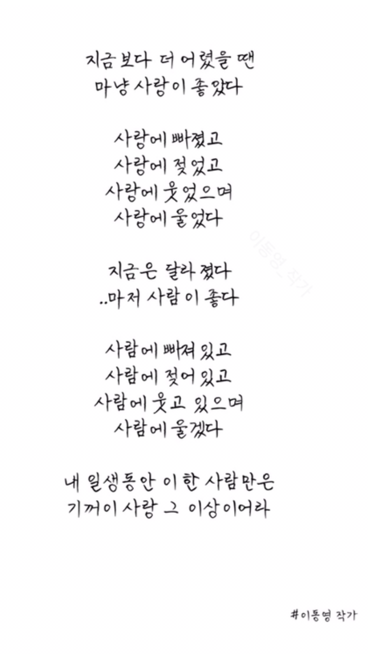이것을 보통의 기준과 생각으로 이해하려 하면 개념이 꼬일 거예요. 그 사람이 기준인 사랑은 언제나 사랑보다 그 사람이 먼저입니다.