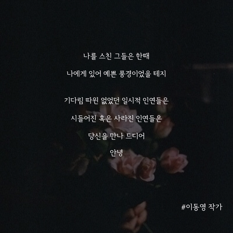 글쓰기 클래스 4기 <글쓰기 시작반> 선착순 신청(7월 토요일) 신청서 작성이 번거롭다면? 빠른 문자신청 : 010-8687-3335 이동영 작가에게 7월 <글쓰기 시작반> 신청하고 싶어요~ 하고 남겨주세요^^ 이동영 작가와 함께 하는 2017년 7월 글쓰기 클래스 4기 <글쓰기 시작반> 선착순 신청란입니다. (강좌일정: 7월 8일 15일 22일 29일(총 4회) 커리큘럼 1주차: 습관화(동기부여) 2주차: 재능보다 재료 3주차: 발견메모/대입하기 4주차: 필사모임 및 총정리 특강 신청 시 개인정보(이름, 연락처, 계좌번호)활용에 동의함을 의미합니다. 오직 글쓰기 클래스 소식 알림(공지) 및 환급, 본인확인용도로만 쓰이며 원치 않으시는 경우 말씀해주시면 2일 이내 파기합니다.참가비는 첫 수업 직전일까지만 100% 환불 신청가능. 공간 대관 시 인당(사람수) 한 달 예약을 하기 때문에, 수업이 시작되면 100% 환불이 어렵습니다. ------------------------------------- 장소: 홍대입구역 1번 출구 방면 <팀플레이스>(예정) 참가비: 13만원(단, 6월 25일까지(얼리버드 기간혜택) 신청 시 10만원 아래 항목을 작성해 제출하시고 입금하시는 선착순으로 클래스 참여 등록이 확정됩니다. 참가비 입금계좌: IBK 기업은행 01086873335(예금주: 이동영) 선착순은 입금순입니다.