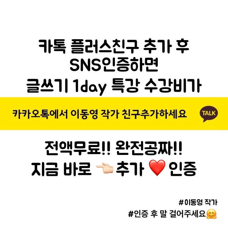 9월 (가을)글쓰기 모임 모집 안내(순서별) * 9월 글쓰기 무료일일특강(홍대, 9/2 토요일 저녁 7시) http://naver.me/GYdWM0Lc ** 9월 글쓰기 클래스 제 5기 (홍대, 9/9부터 매주 토요일 총 4회 오후 2시) http://naver.me/GdxINhXZ *** 9월 독서모임<일상다독>(홍대, 9/10 일요일 오후 2시) http://naver.me/xAmDltVa **** 9월 필사모임<필사적으로> 제 21차 (홍대, 9/15 금요