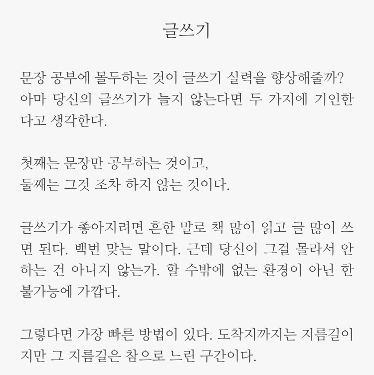 문장 공부에 몰두하는 것이 글쓰기 실력을 향상해줄까?