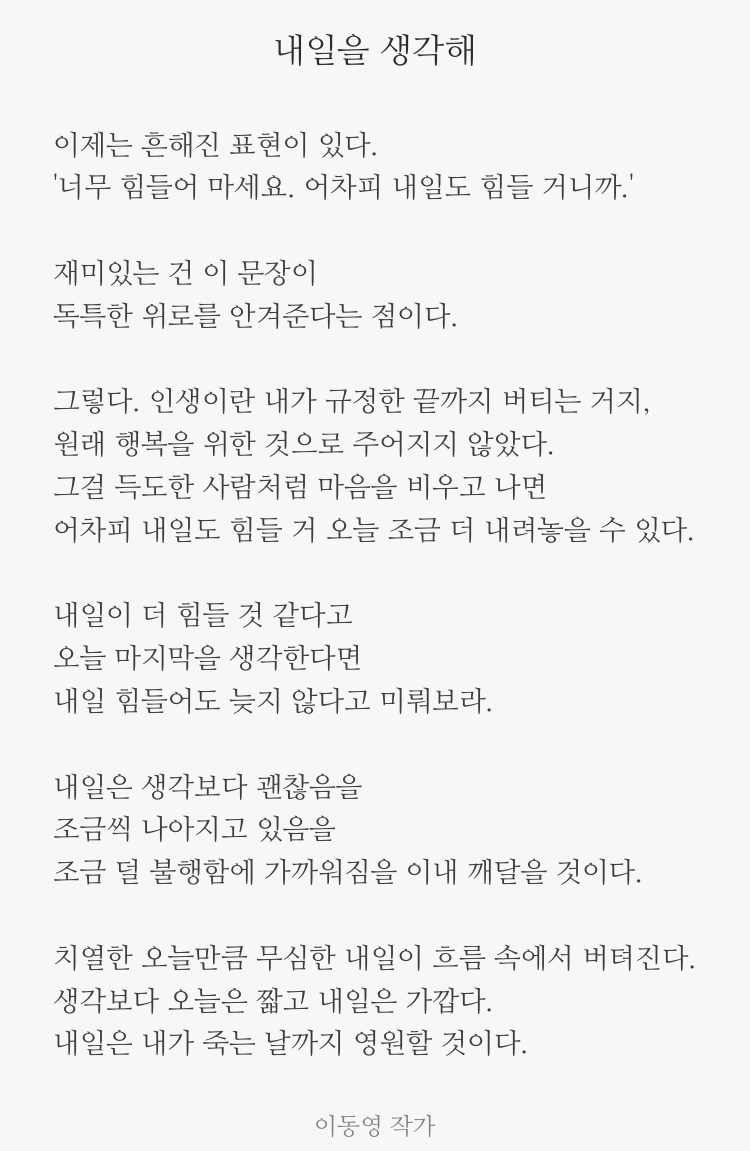 '너무 힘들어 마세요. 어차피 내일도 힘들 거니까.'