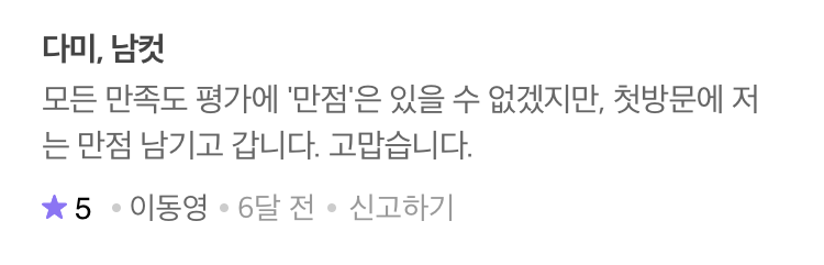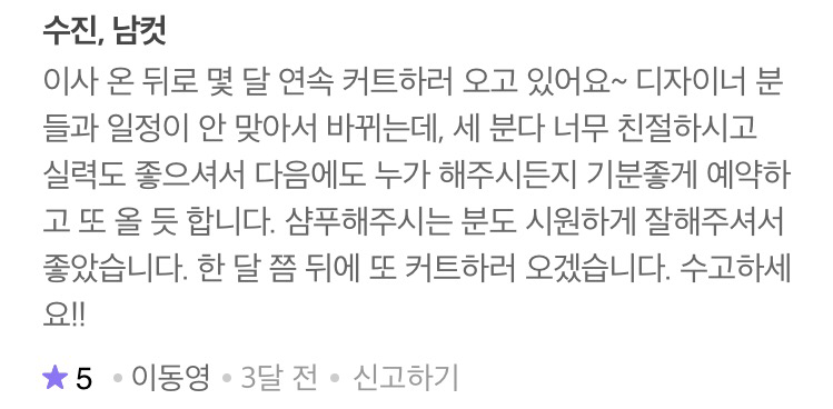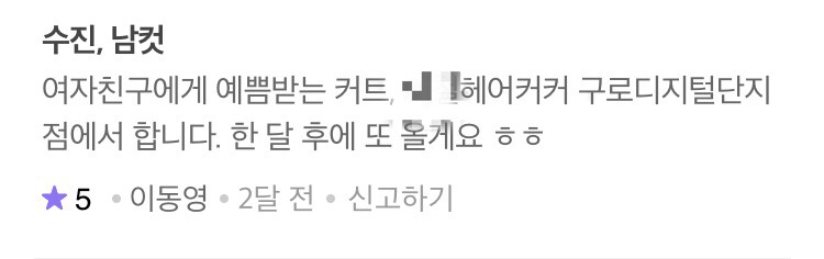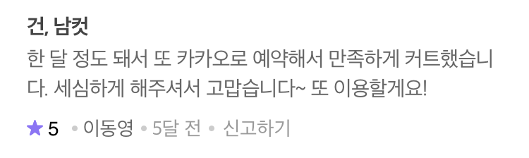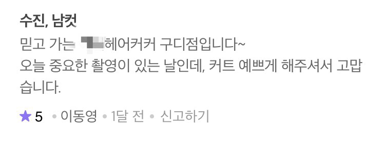 "그럼, 투블럭 6미리로 밀어드릴게요~"라고 긴 대화가 필요 없이 바로 진행했는데 말이다. 굳이 멘트가 있었다면 "어플에 리뷰 남겨주신 거 감사해요."정도였다.