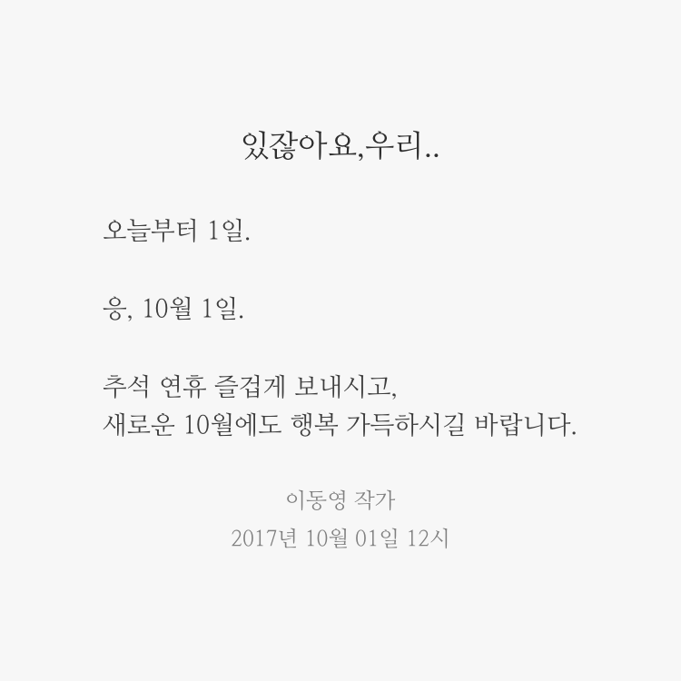 새로운 10월에도 행복 가득하시길 바랍니다.