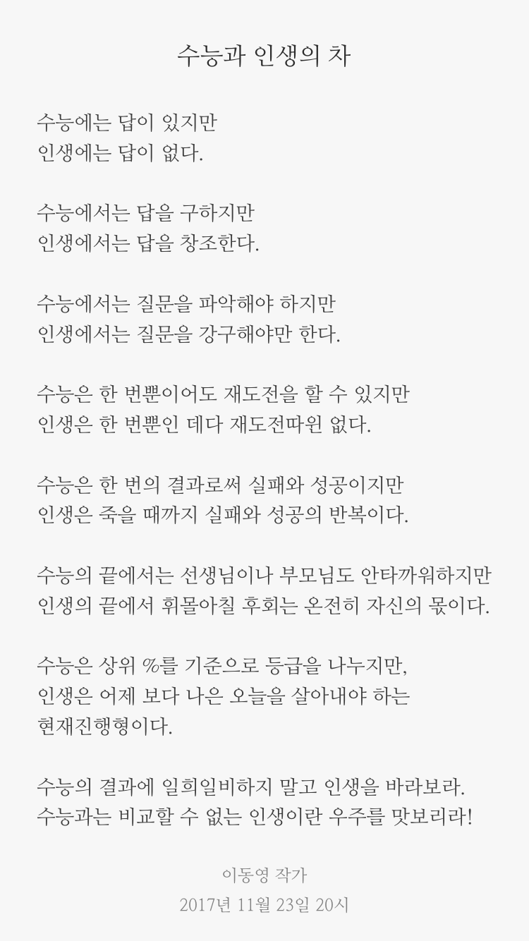수능의 결과에 일희일비하지 말고 인생을 바라보라.