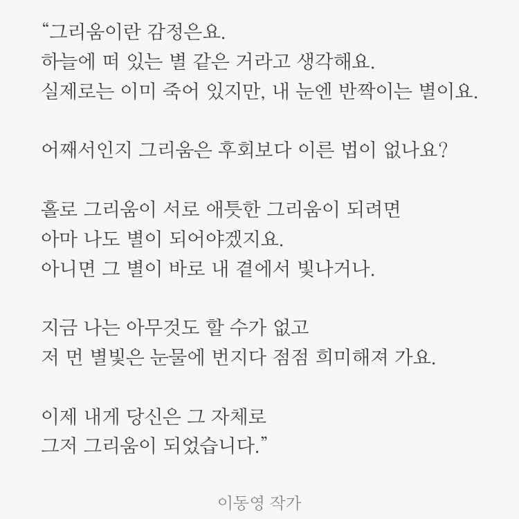 저 먼 별빛은 눈물에 번지다 점점 희미해져 가요.