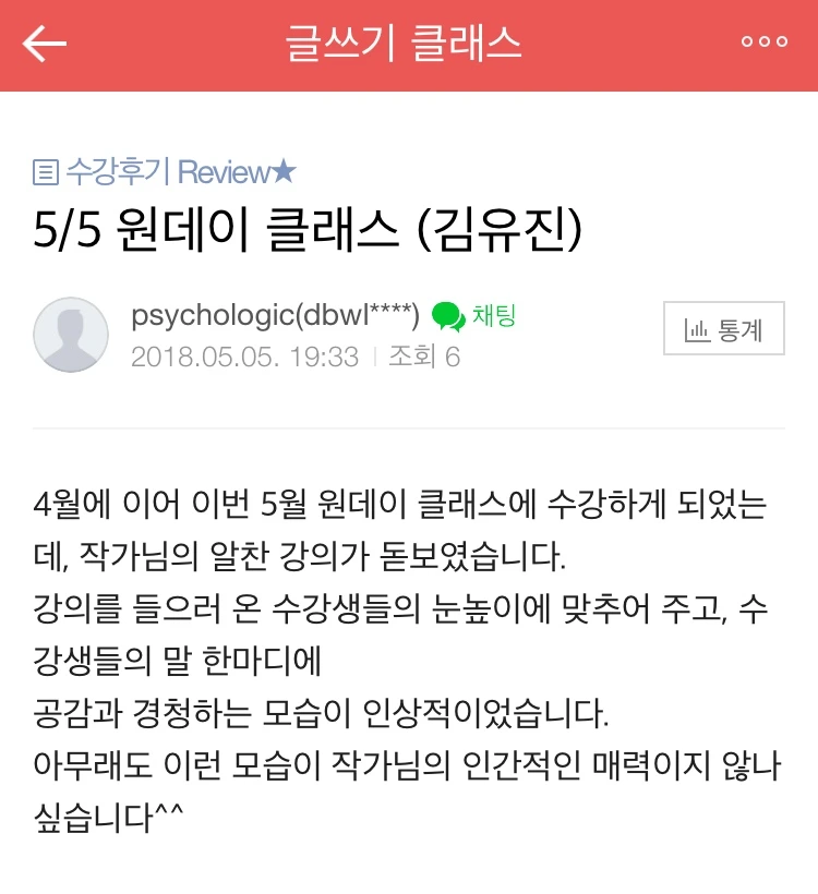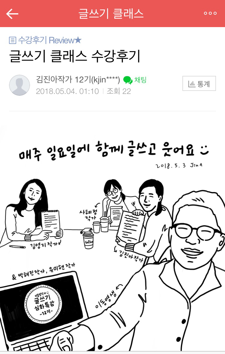 글쓰기 일일특강도 수강생 후기로 검증된 이동영의 글쓰기 일일특강으로 오세요 :)