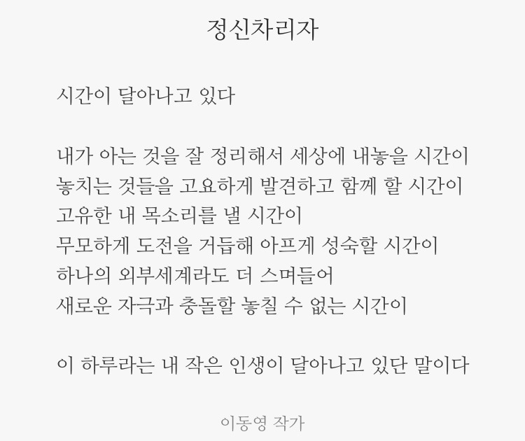 이 하루라는 내 작은 인생이 달아나고 있단 말이다 #이동영