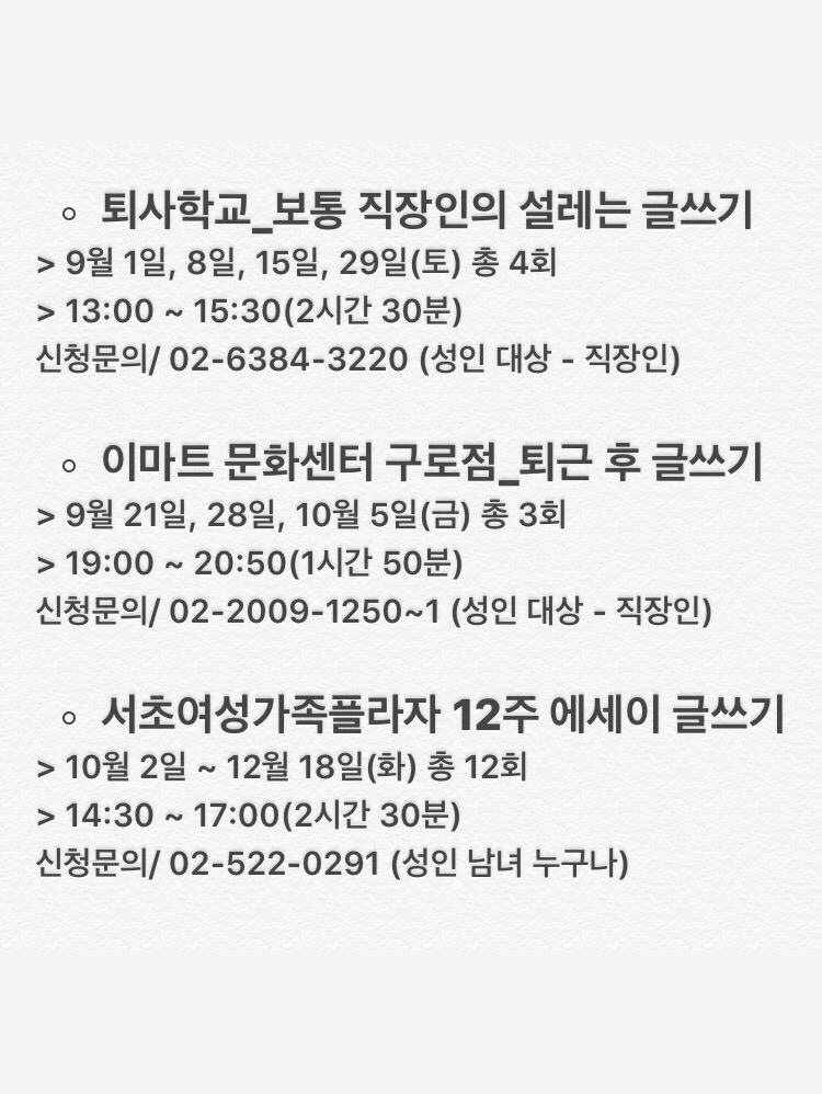 어느새 1주년이 된 광복절 일일특강에 딱 10명만 모집했고, 일찍이 100% 신청이 완료되었다. 그들이 내 강의를 통해 부디 글쓰기의 즐거움을 깨닫고 글쓰기의 동기를 가지고 돌아가길 진심으로 바란다.