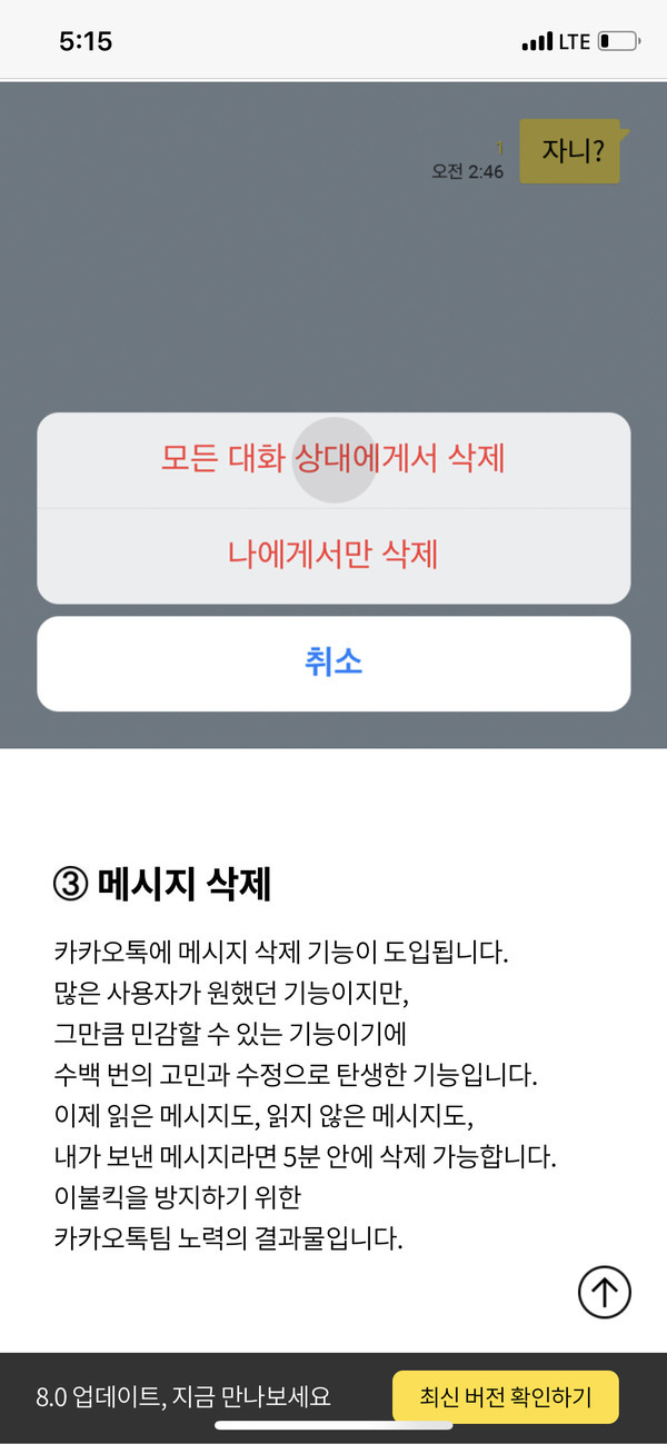 카톡 메시지 이불킥을 방지하려거든... 5분 안에 ..... 삭제합시다.