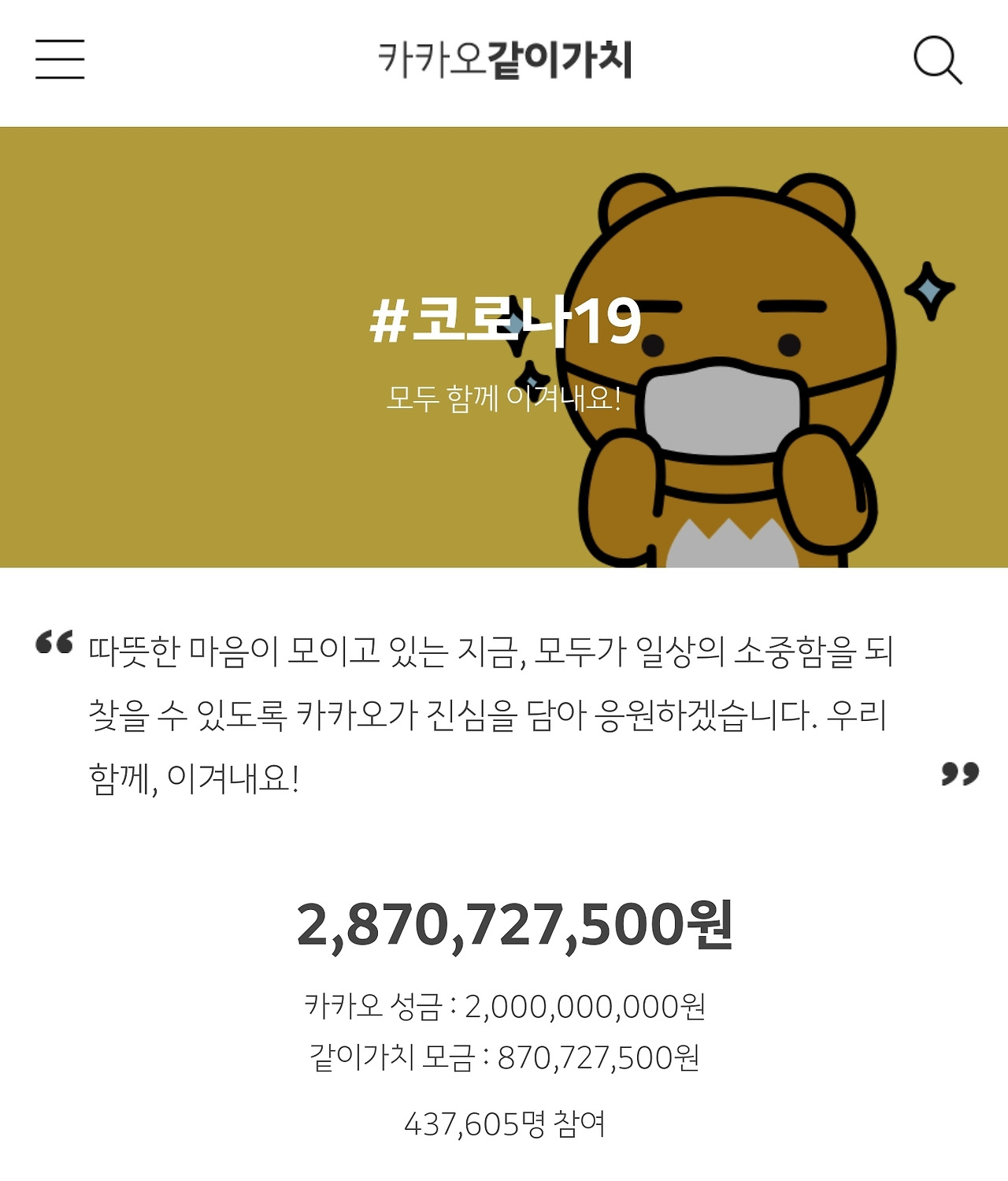 정부나 특정 종교를 비판하는 것도 좋지만, 지금은 고생하는 공무원 분들이나 자발적인 국민들을 격려할 때라고 생각해요. 그래야 상황이 긍정의 방향으로 조금 더 빨리 그리고 확실히 나아지지 않을까요? 무엇보다 내가 가진 작은 걸 나누는 것부터 시작한다면 현실의 변화가 와 닿지 않을까요? 우리 지금처럼 주의를 기울이고 함께 이겨내자고, 이겨낼 수 있다고 더 서로를 응원해요. 우리는 그렇게 늘 위기를 이겨내 왔잖아요.