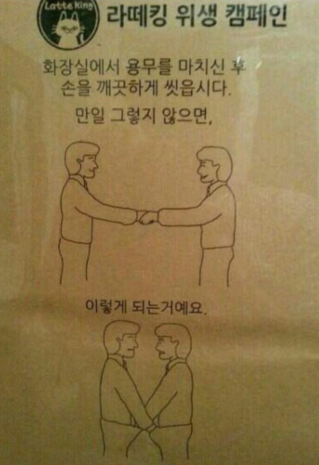 여러분, 손 씻기 6단계를 지켜주세요. 그리고 앞사람이 비누칠 후 30초간 손을 씻을 때 이해하고 기다리는 에티켓 문화를 나부터 만들어가자구요!!! 이 연사 힘차게 외칩니다!