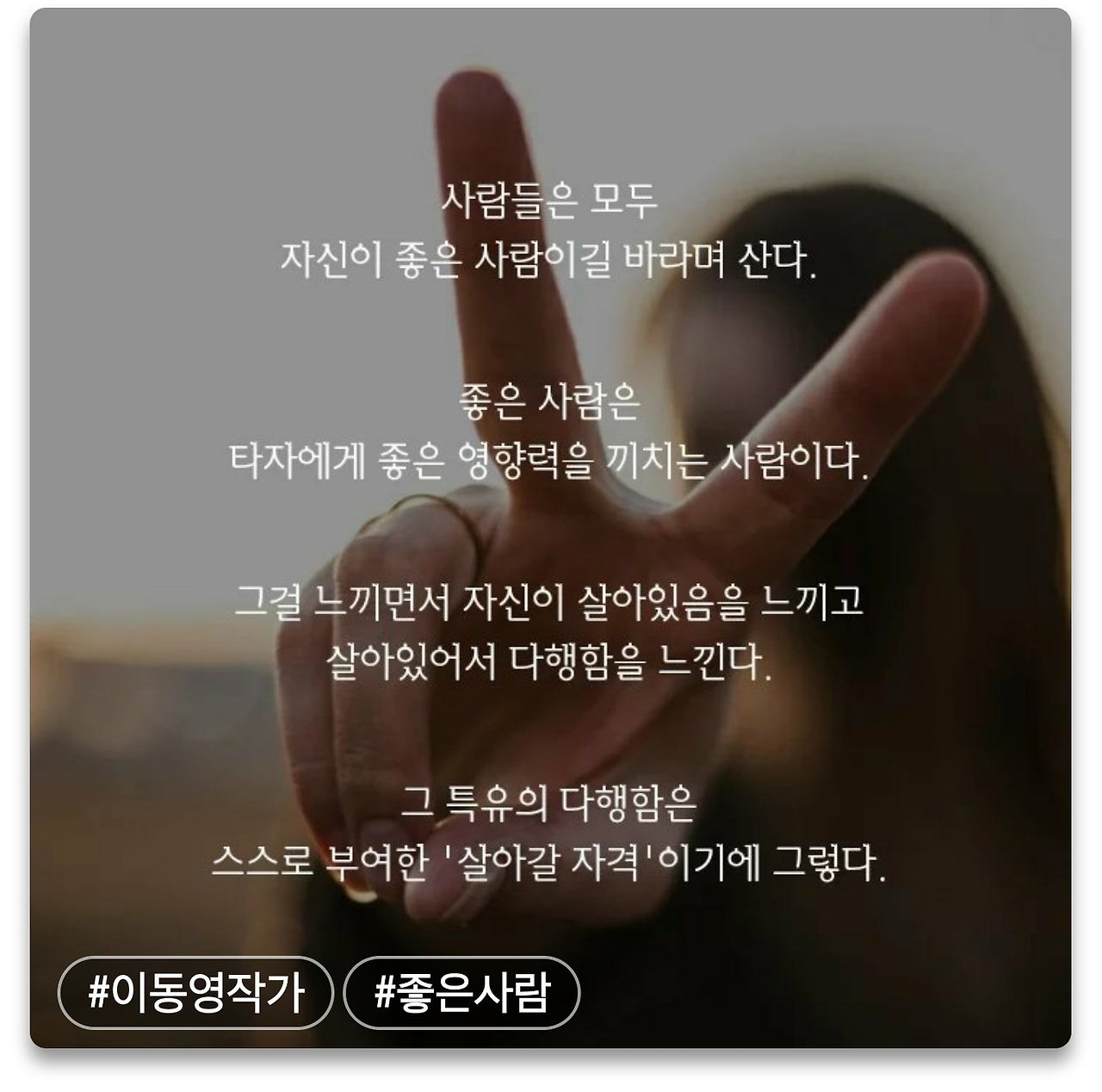 좋아요 961개, 댓글 43개 - Instagram의 이동영 작가�♂️✍(강사, 글스타그래머)(@dong02insta)님: "상대방은 나의 소유가 아니다. 나 역시 상대에게 마찬가지이다. #이동영작가 #인간관계 #공감 #글��