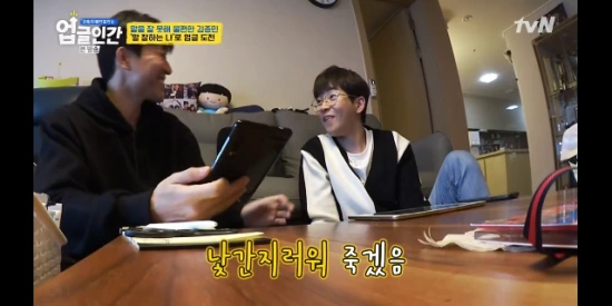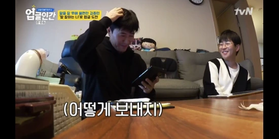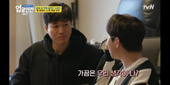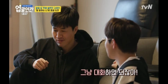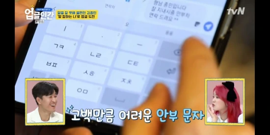 좋은 말이 생각이 안 나서 안부 문자 하나도 어색하다는 김종민에게 딘딘이 말한다.