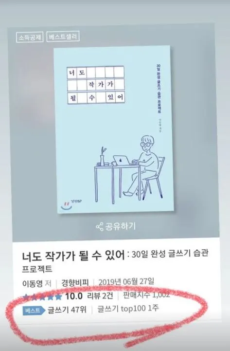 그런데 강의에 푹 빠져버려서 책을 쓸 생각은 안 하고 글 쓰세요 동기부여만 주야장천 하고 있는 내 모습에 현타가 오기 시작했는지 뭐라도 해야겠다는 악에 받쳤다. 그러다가 2019년에 냈던 글쓰기 책 <너도 작가가 될 수 있어>를 다시 홍보하기 시작했다.