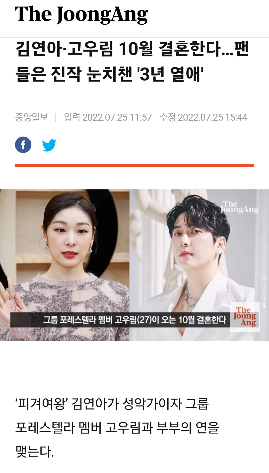 고우림 님 나이 차가 김연아 님보다 5살 연하인데 역시 능력자.. 아니 두 분 중에 누가 진정 능력자인 걸까요^^; 암튼 고우림 김연아 두 분. 올 가을(22년 10월)에 결혼한다고 하니 진심으로 축하드립니다..! 포레스텔라 흥해라!!
