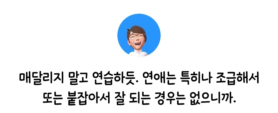 매번 그랬던 것 같다. 운이 좋아서 몇 번의 연애를 잘했던 것이지, 난 연애에 너무 조급한 스타일이었단 걸 뒤늦게야 알았다.