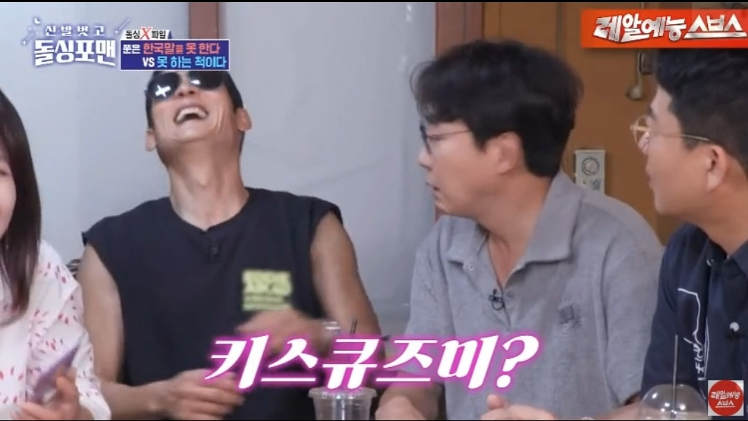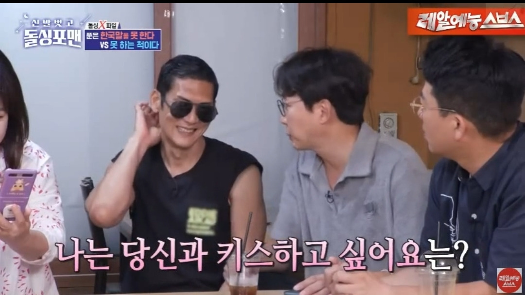 예시 2.) SBS <신발 벗고 돌싱포맨> 중 탁재훈이, 한국말은 서툴고 영어가 더 익숙한 박준형(god)에게 영어 퀴즈를 내는 장면.