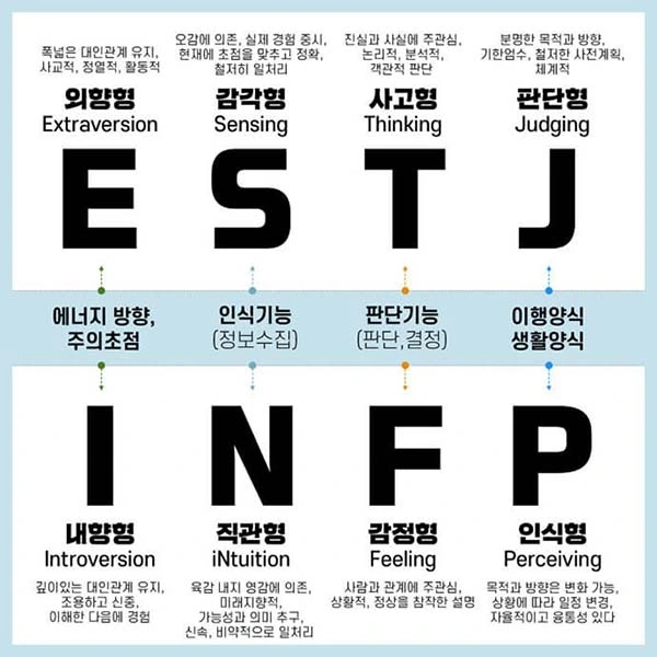 저는 MBTI를 맹신하지도 않고 잘 알지도 못합니다만..