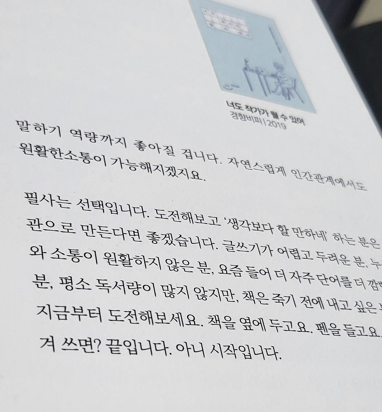 2) 해당 페이지로부터 3페이지 이내에 와닿는 문장을 필사한다.
