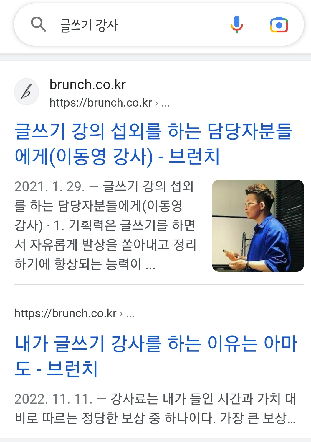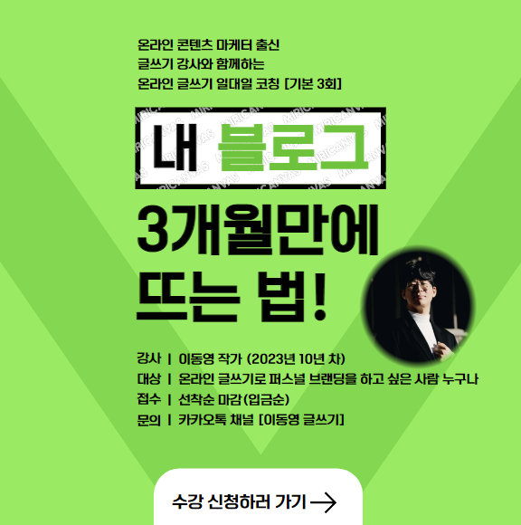 "이동영 작가님이 블로그랑 브런치 글 올리신 거 보고 연락드렸습니다. 저희가 하려는 강의 프로그램하고 맞는 것 같은데, 후기 올리신 거 보니까 너무 좋더라고요."