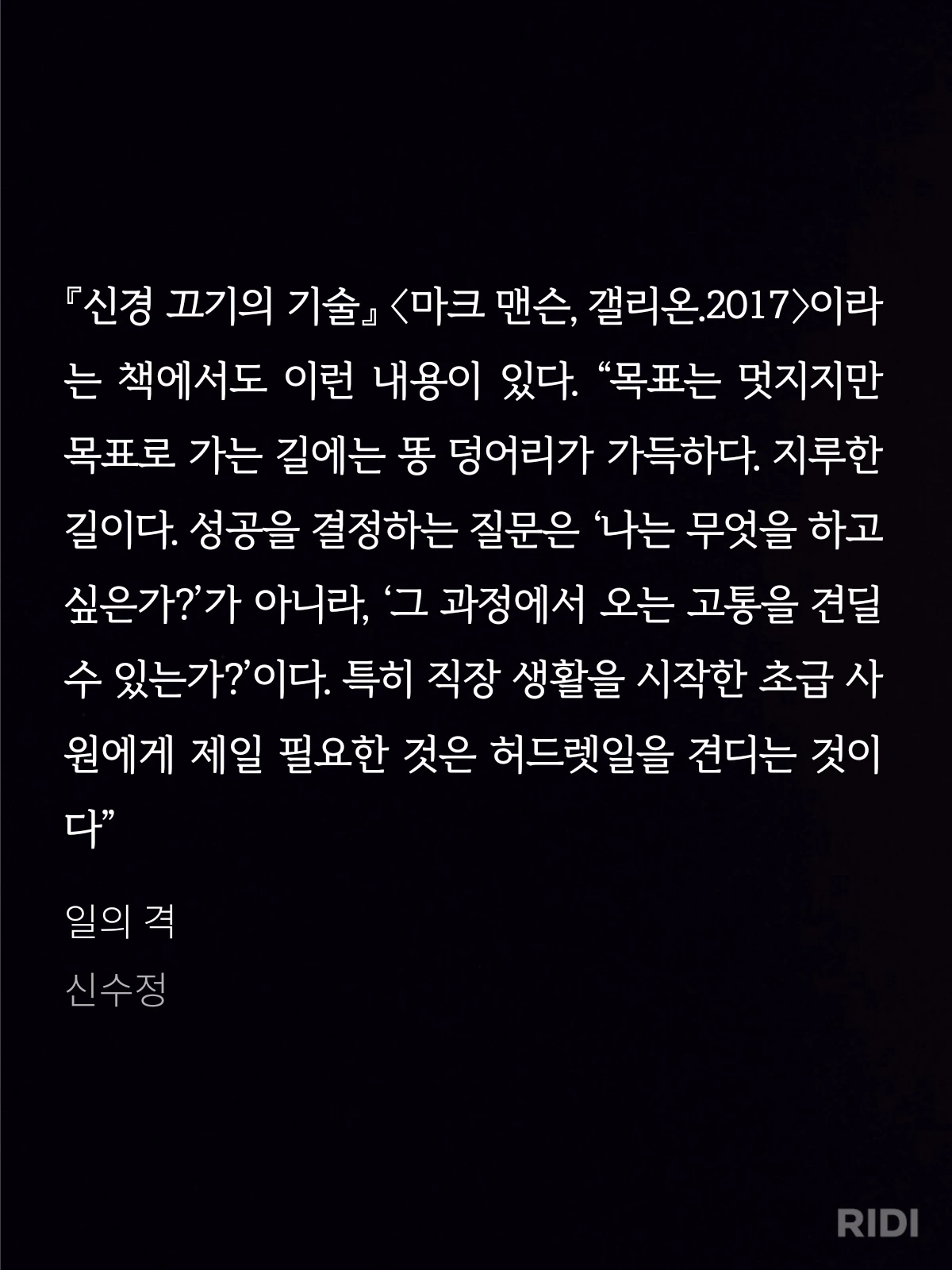 목표는 멋지지만 목표로 가는 길에는 똥 덩어리가 가득하다. 지루한 길이다.