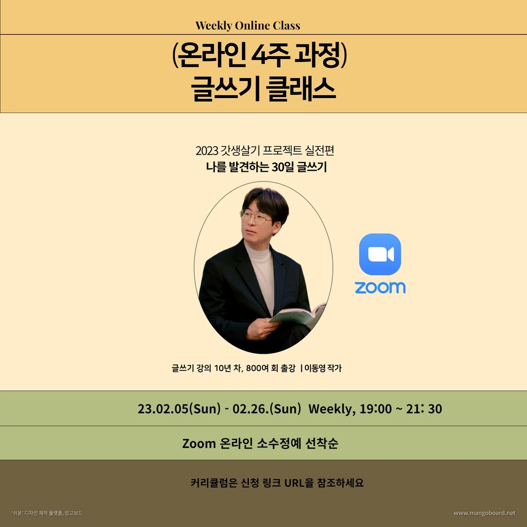 현재 기준으로 온라인 클래스는 몇 자리 남진 않았지만 선착순으로 마감하니 놓치지 말고 지금 링크를 눌러서 신청하시면 됩니다. 온라인과 오프라인 글쓰기 클래스 둘 다 모집하니 꼭 필요한 분은 도움 받으셨으면 좋겠습니다.