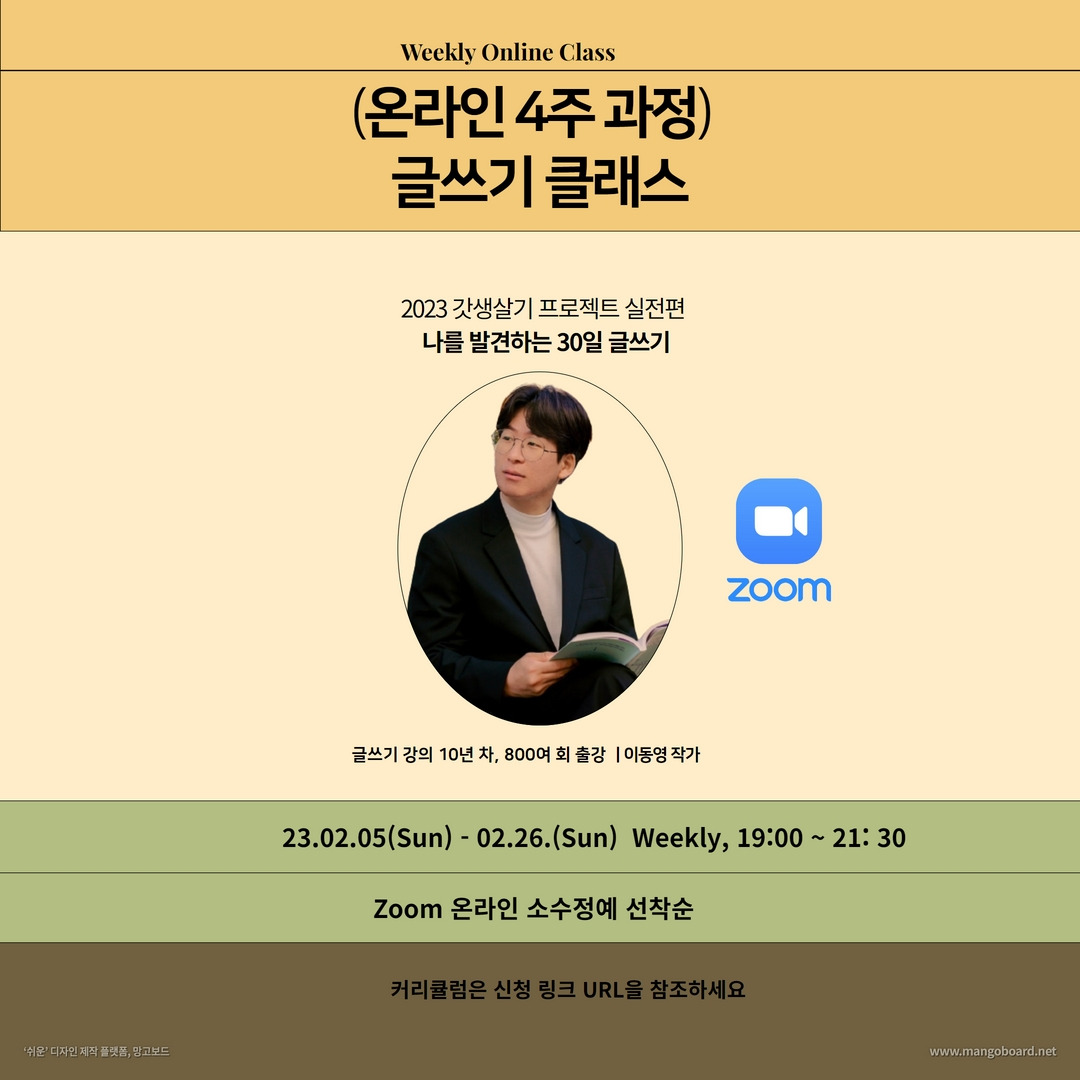 '나를 발견하는 30일 글쓰기' 23년 2월 매주 일요일 저녁 코스 안내