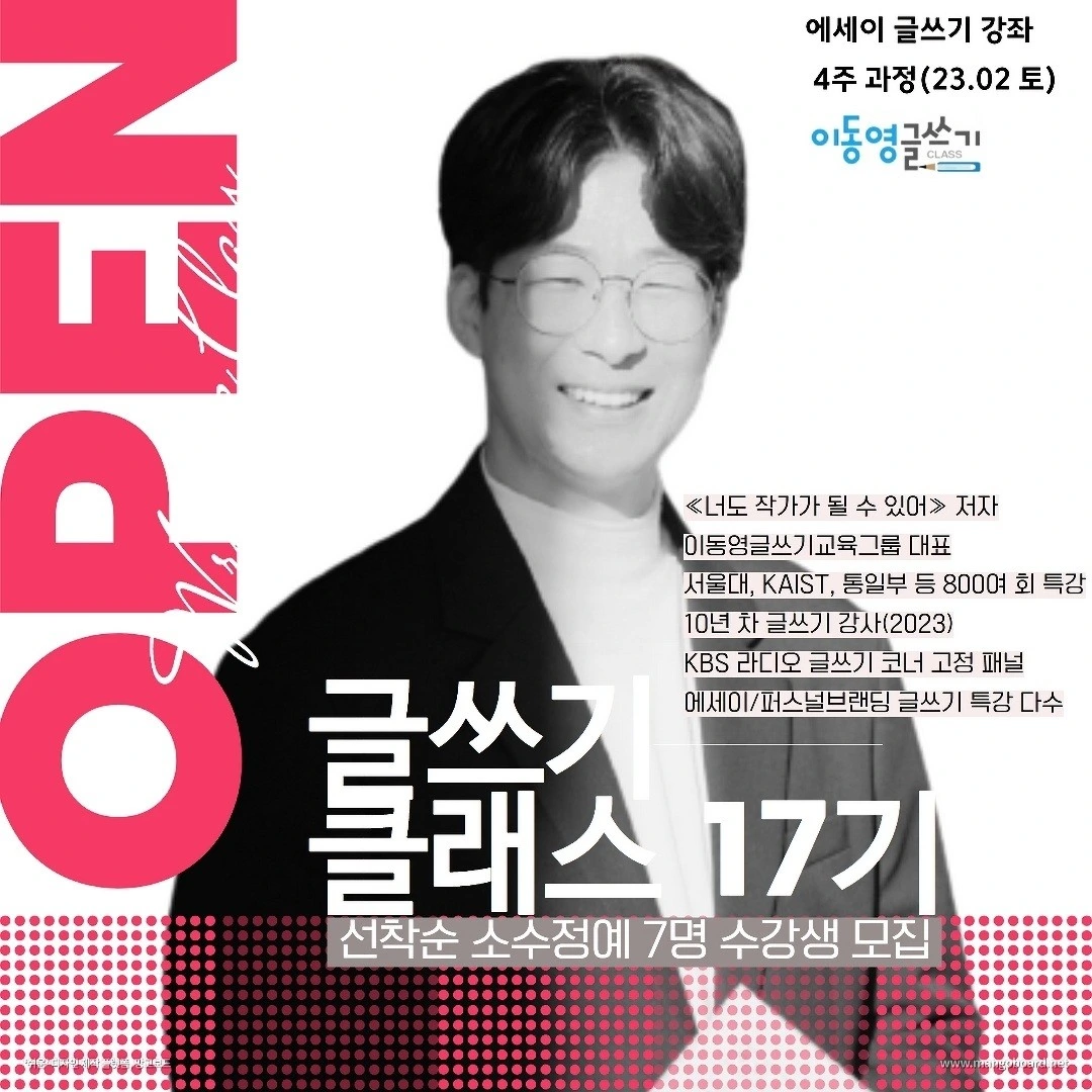글쓰기 강사 | 이동영 작가 | 글쓰기 강의 12년 차(2025) | 기업·대학 등 1000여 회 출강 | 에세이 특강 | 홍보 글쓰기 Lhh2025@naver.com(강의·방송)