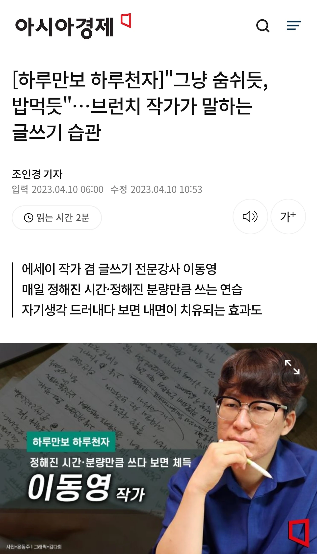 10년 차 글쓰기 강사이자 에세이스트인 이동영 작가의 글쓰기습관은?