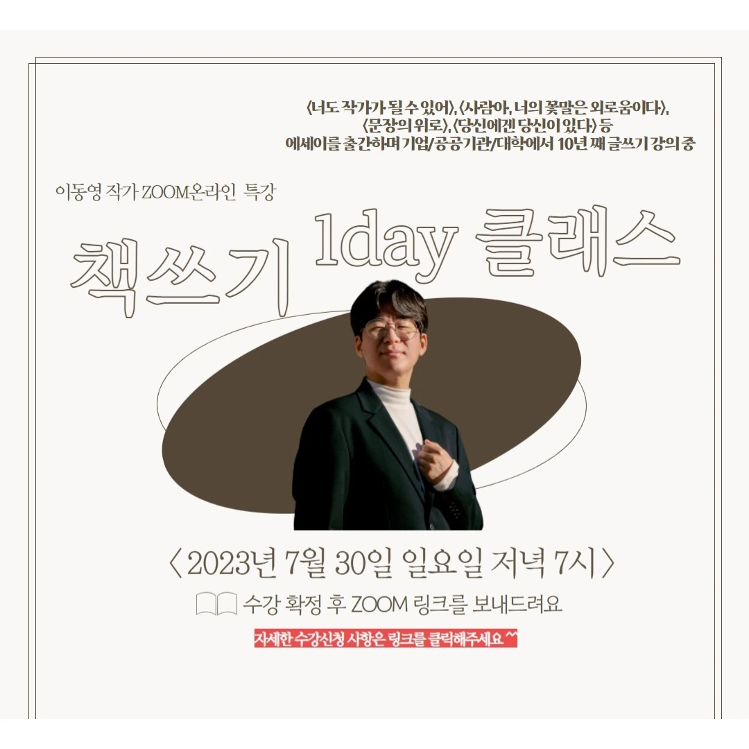 책쓰기 원데이 특강 클래스 7/30(일) 줌온라인 강의