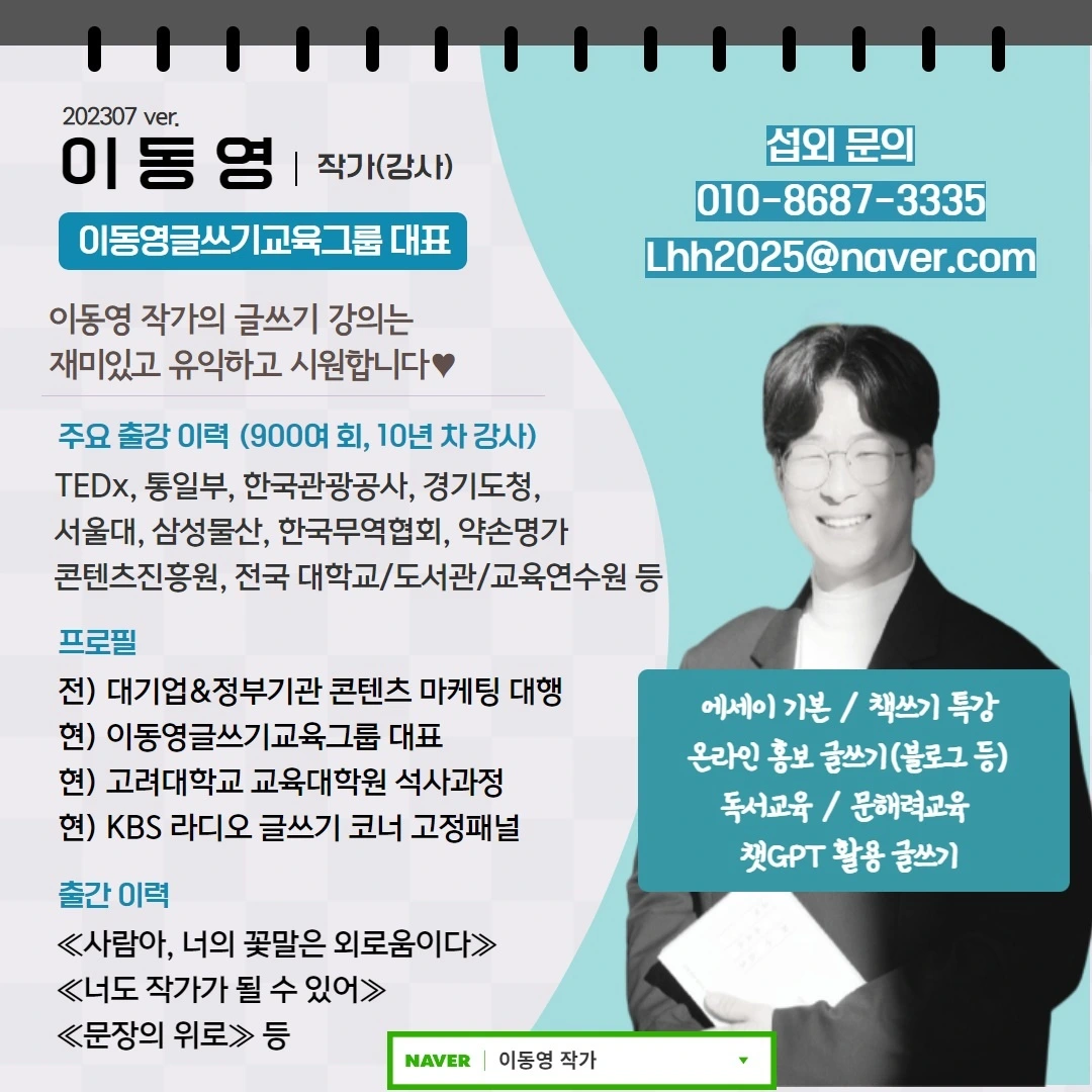 순수하게 내 이야기를 해보겠다. 난 글쓰기나 강의에 타고난 사람이 아니다. 내 사주를 풀이해 보면 타고난 재능 자체는 매우 부족한데, 성실함과 노력하려는 본성·기질 따위를 타고나서, 부족한 재능을 스스로 계발하여 먹고사는 팔자란다. 이 역시 성실과 노력의 아이콘인 부모와 형이라는 가족 테두리 안에 환경이 미친 초년운의 영향이 컸다.