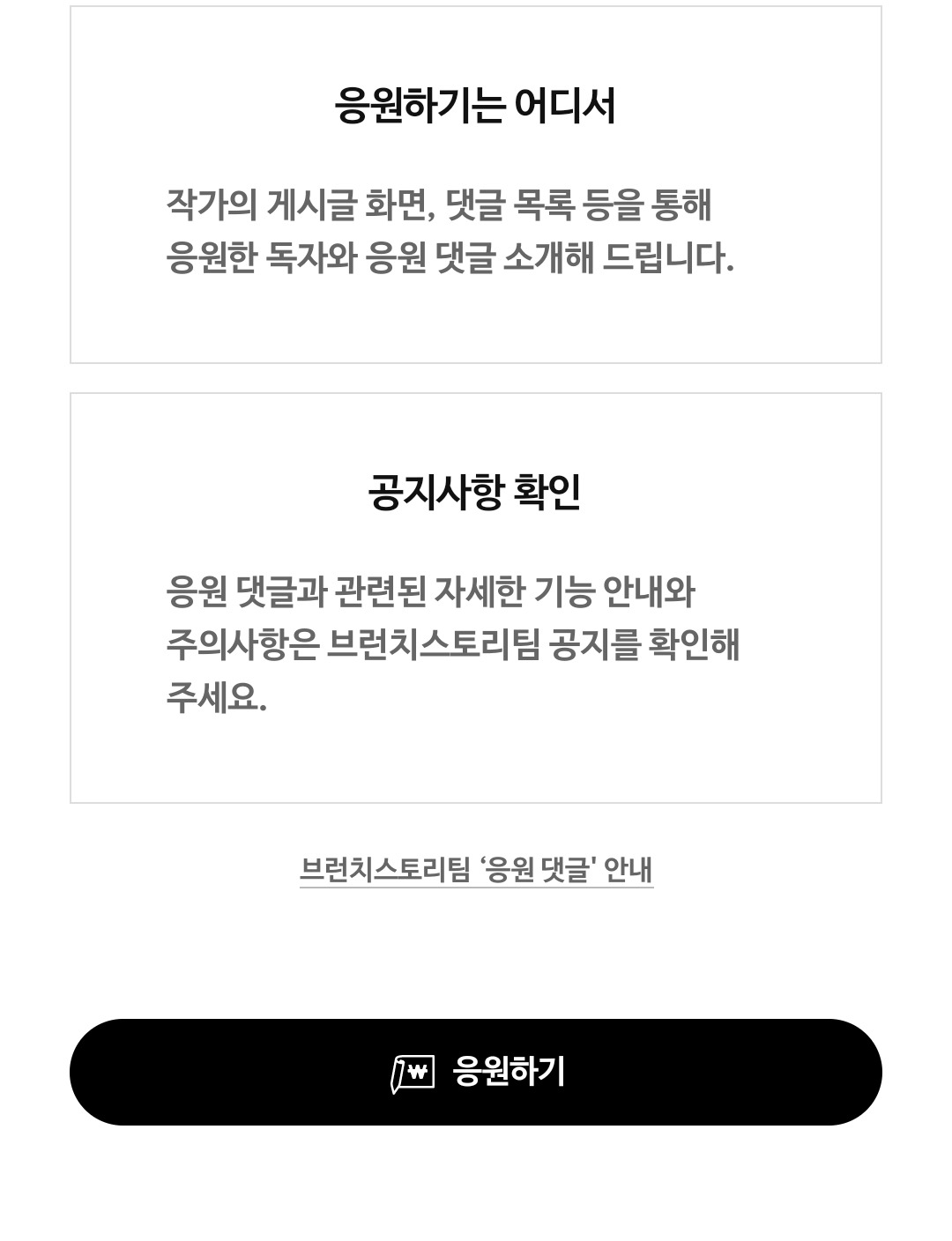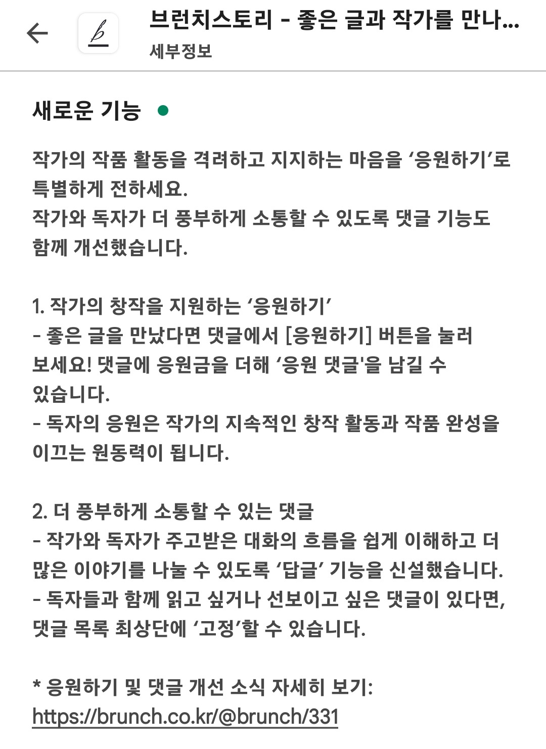 작가의 창작을 지원하는 ‘응원하기’ 및 댓글 개편 안내 | 안녕하세요, 브런치스토리팀입니다. 새롭게 선보이는 ‘응원하기’와 소통 기능이 더 풍부해진 댓글 개선 소식을 전해 드립니다