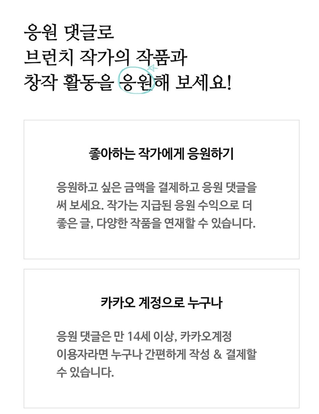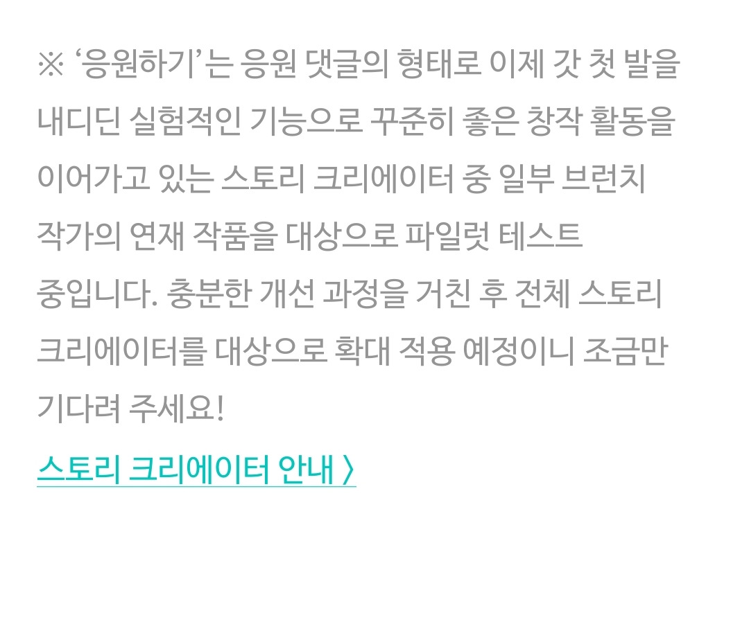'응원하기' 연재 파일럿 및 스토리 크리에이터 제도 안내 | 창작 활동의 수익화라는 과제 앞에 브런치스토리팀은 수년에 걸쳐 깊이 고민했습니다. 작가에게 절대적인 영향을 끼치는 독자와의 관